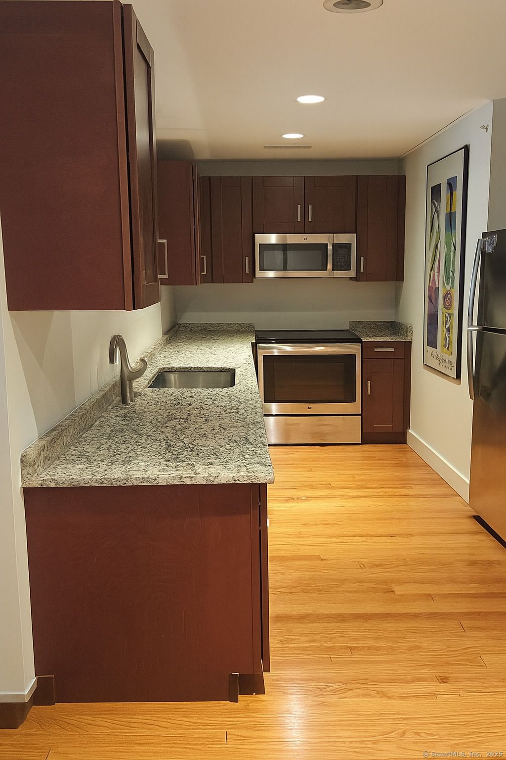 Lovely second floor 1 BR/1 BA apartment in desirable Farmington. This apartment features open floor plan with wood floors (except in BR), Galley kitchen with granite counter tops and pantry closet. In unit washer dryer and tiled bathroom with tub/shower. Located around the corner from Miss Porters, UCONN Medical facility, and The Hill-Stead Museum, easy Highway access as well. Rental is $ 1795.00 per mo. plus $75.00 per month for water and sewer, to equal $1870.00 per month. Electric/internet and propane are direct bill to tenant. Available January 1, 2026. Excellent credit, one months security, No Pets, Tenant pays credit check.