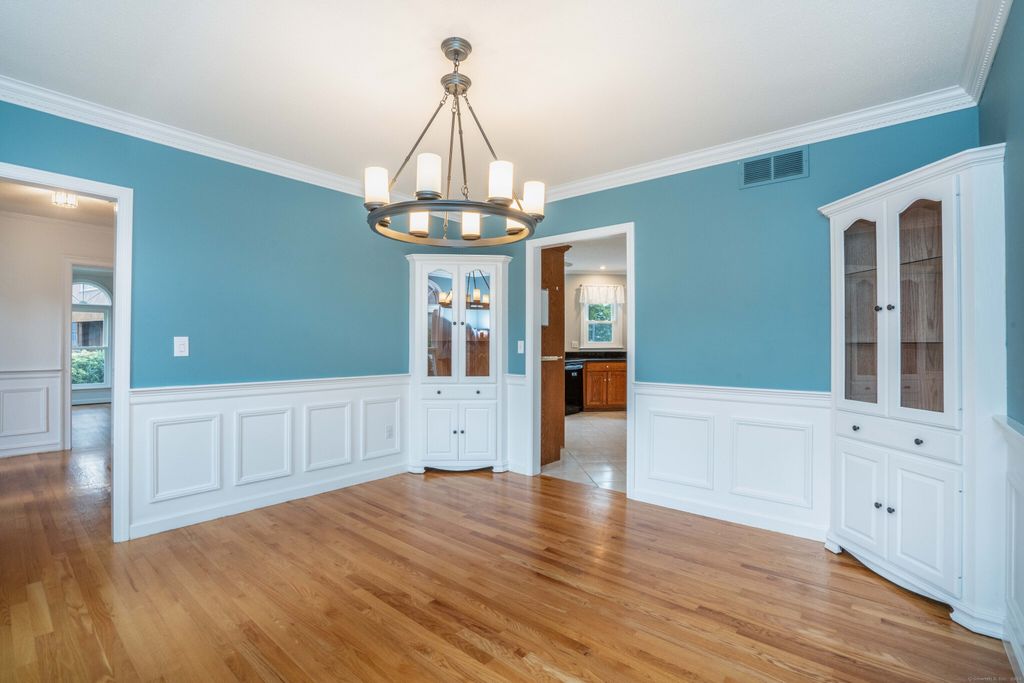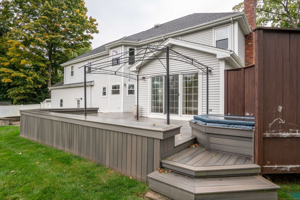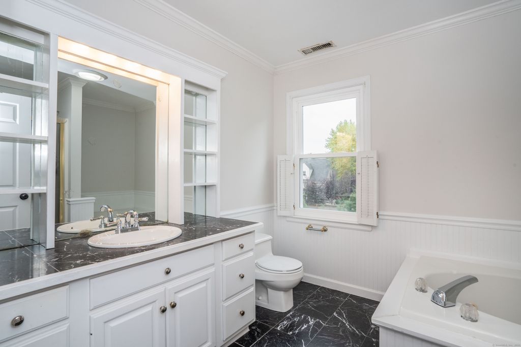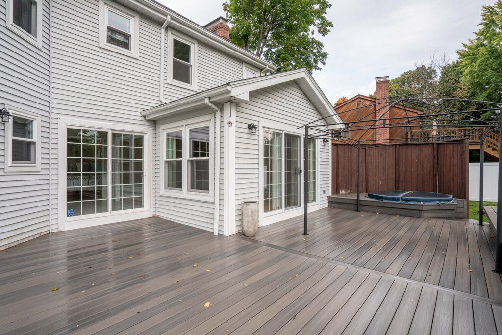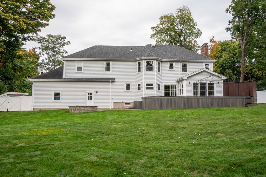 Nestled on a quiet cul-de-sac in the sought-after town of West Hartford, this stunning home exudes timeless elegance with spacious interiors and an unbeatable location. Step inside to find a gracious foyer that opens to a sunlit living room with a charming fireplace. The staircase, with its classic design, serves as a striking focal point upon entry. A formal dining room with built-ins flows into a beautifully updated kitchen featuring granite countertops, ample cabinetry, and a built-in desk. The adjacent family room, complete with a second fireplace, opens to a sprawling deck with a hot tub-perfect for entertaining or unwinding while overlooking the expansive, meticulously maintained private backyard. Gorgeous hardwood floors extend throughout the first floor of the home, complemented by elegant chair rail and picture frame moldings. Each room is thoughtfully adorned, from arched window details to intricate trim work. Upstairs, the primary suite offers a spacious walk-in closet area and luxurious bath. Three additional bedrooms, a full bath, and a charming reading nook with a window seat and built-in bookcases complete the second floor. The lower level provides added versatility with a rec. room, bar area, and workshop/storage space. A two-car garage completes the property.With exceptional finishes and a location just moments fr schools, shops, dining, and local attractions, this home embodies the best of West Hartford living.