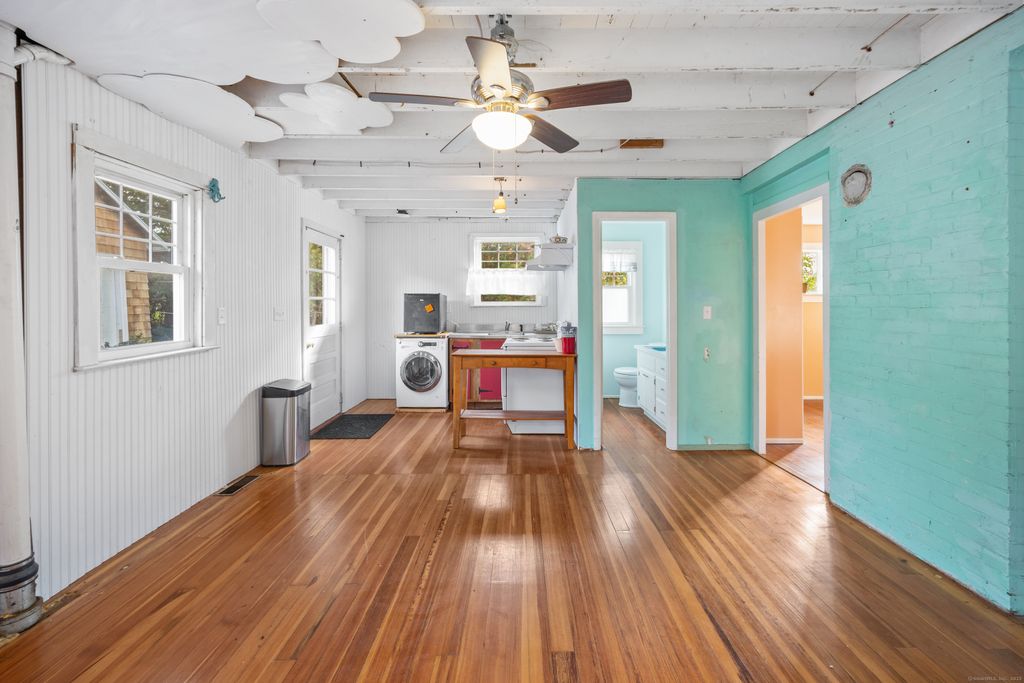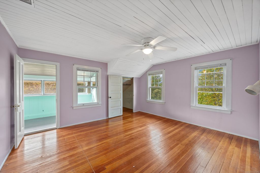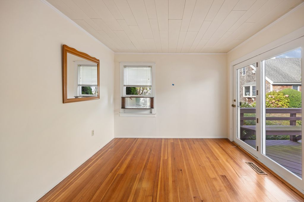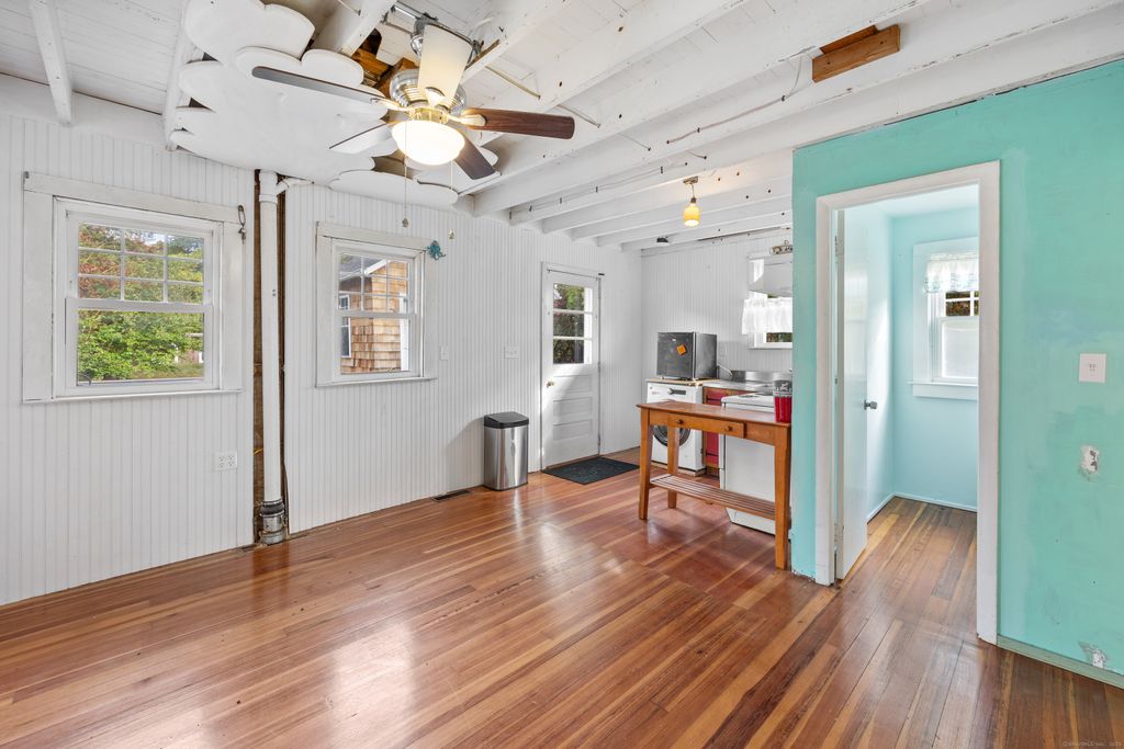Set along one of Clinton's scenic coastal roads, this classic 1930 cedar-shake home blends timeless character with thoughtful updates. Inside, refinished hardwood floors extend through a comfortable layout featuring a bright enclosed front porch, a living room with a wood-burning fireplace, and a dining room ready for gatherings. The spacious eat-in kitchen retains its vintage charm and is ready for your ideas and updates. Upstairs, three inviting bedrooms share a full bath. One bedroom opens to a covered second-floor porch overlooking the front yard-a peaceful spot to enjoy morning coffee or an evening breeze. The back deck, on the other hand, looks out toward the marsh and Clinton Land Trust area, offering a private view of natural surroundings. Set on a level 0.56-acre lot, the property includes a detached shed, raised garden beds, and plenty of open yard space for outdoor enjoyment. The two-car detached garage was completely refreshed in 2024 with matching cedar-shake siding, new doors, and an opener. Additional updates include a new roof (2021), 100-amp electric service upgrade (2018), and an electric heat pump with central air installed in 2022. Conveniently located near Clinton Town Beach, Hammock Point, and the Clinton Land Trust trails, this home sits within a mile of downtown shops, dining, and the train station-an ideal blend of coastal charm and everyday accessibility. Make an appointment today to see this home and all that Clinton CT has to offer.