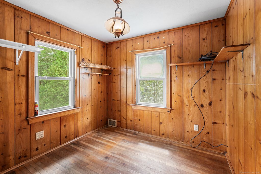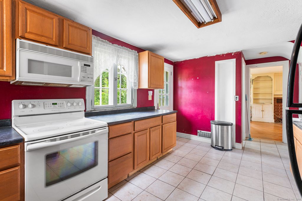 Opportunity knocks! Sited on a corner lot in a prime location just a half-mile from Eastern and a short stroll from the many dining and nightlife options in downtown Willimanti, this handsome brick tudor is a rare find. Dripping with original charm, this home offers the perfect balance of move-in readiness and the potential to build equity. With 4BR and 1.5 baths, plus an additional ~400sqf of semifinished, heated space in the basement (not reflected in listing sqf), there's plenty of space of owner occupants and investors alike! The timeless floorplan is complemented by windows in all the right places & original hardwood flooring throughout. Front to back living room is anchored by a wood burning fireplace flanked by custom built-ins. This space leads to a lovely covered porch overlooking a well sized yard - the perfect place to enjoy a cup of coffee or al fresco dining. Cheery kitchen is well-sized with excellent storage and counter space & awaits your finishing touches. Full size dining room w crown molding & built-in hutch. Upstairs, the primary has a walk-in closet and shares an updated (new tub/surround!) with 3 other BRs, all with hardwood floors. Semi finished basement offers a family room / den in basement, laundry, and excellent storage. Central air, efficient gas heat, and replacement windows. 2 new storm doors. With a little polish, this one will shine - an exceptional entry point into a vibrant community!
