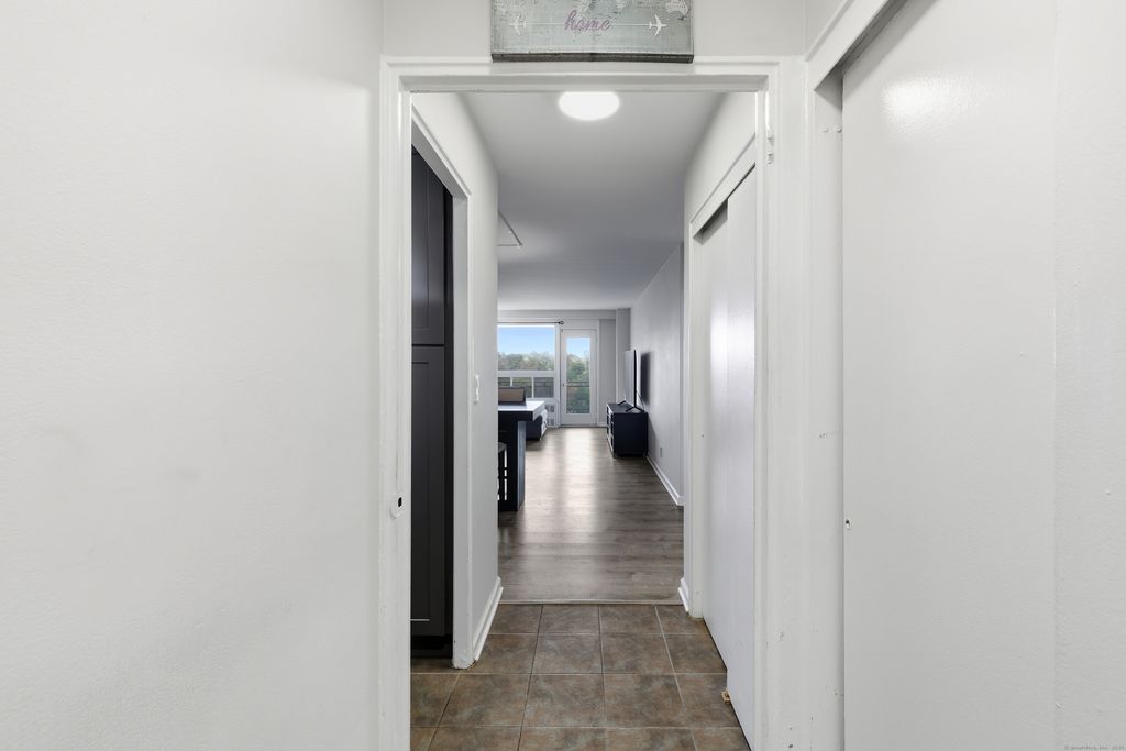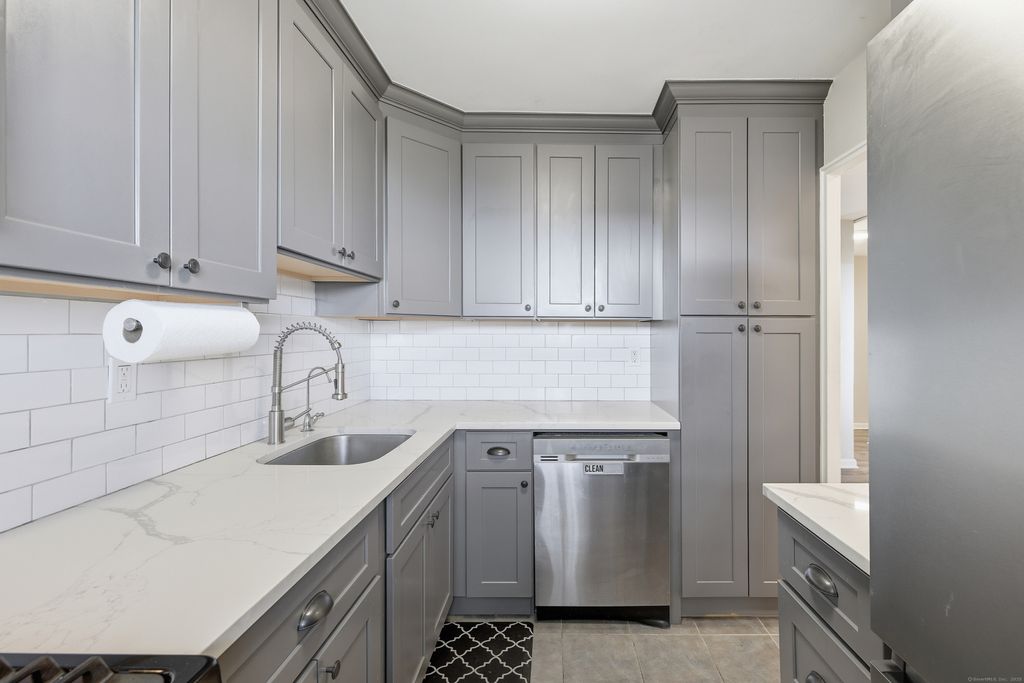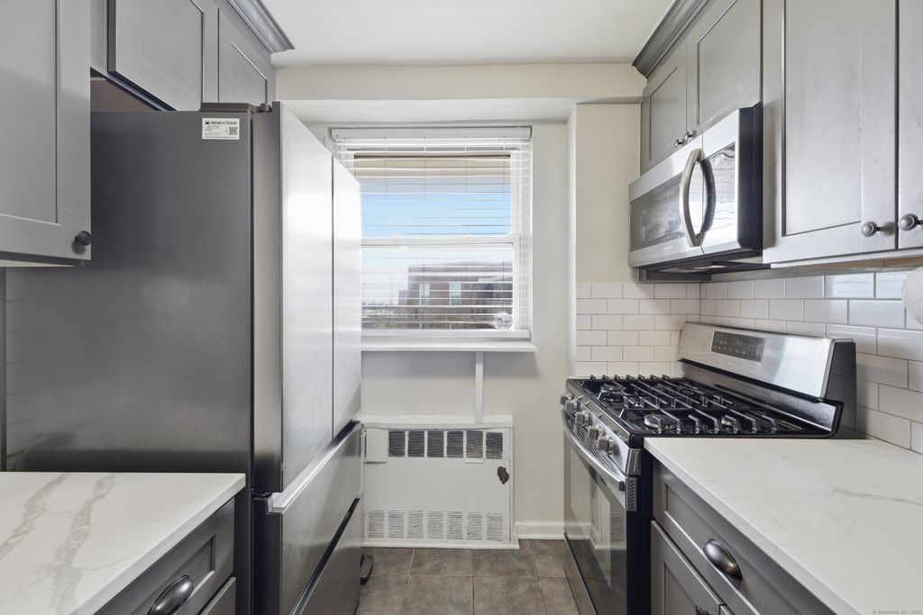 Beautifully renovated and completely move-in ready, this top-floor penthouse suite combines modern elegance with everyday comfort. Inside, you'll find two well-proportioned bedrooms and a full bathroom, all enhanced by stylish finishes and thoughtful updates. The open-concept living and dining area offers an easy flow, ideal for both entertaining and quiet nights in. The updated kitchen serves as the centerpiece of the home, featuring sleek quartz counters, an Aquasana reverse osmosis water filtration system, and a counter-depth refrigerator. From the kitchen window, enjoy peaceful glimpses of the Long Island Sound as you start your day. The bathroom, recently updated, features a heated floor and a custom glass-enclosed shower surrounded by designer tile. Step out onto your private balcony and take in the treetop views - the perfect place to unwind or admire the changing seasons. Storage is never an issue with generous closet space and an additional dedicated storage unit in the basement. Located just a short 10-minute walk from downtown Stamford, this home offers easy access to Bedford Street's popular dining, cafes, and vibrant atmosphere. Whether enjoying summer evenings outdoors or watching the fall colors unfold from your balcony, this property delivers a refined yet relaxed lifestyle in an unbeatable location.