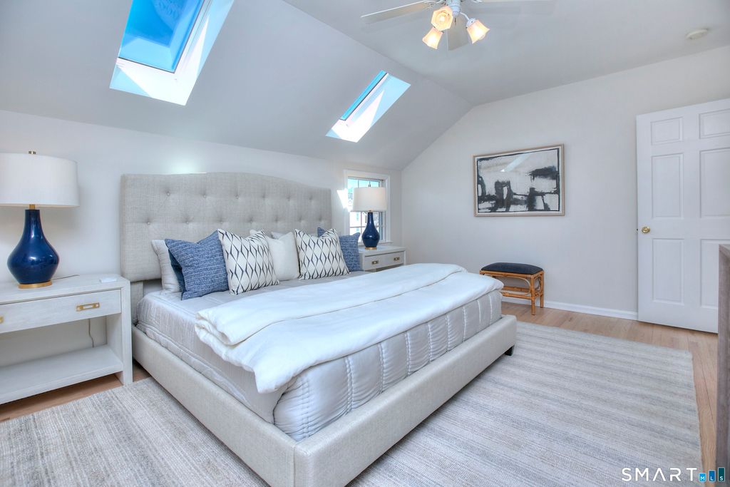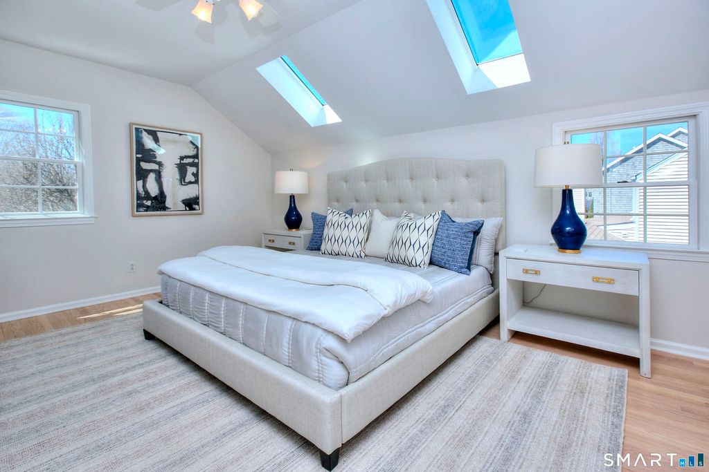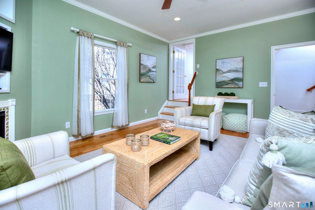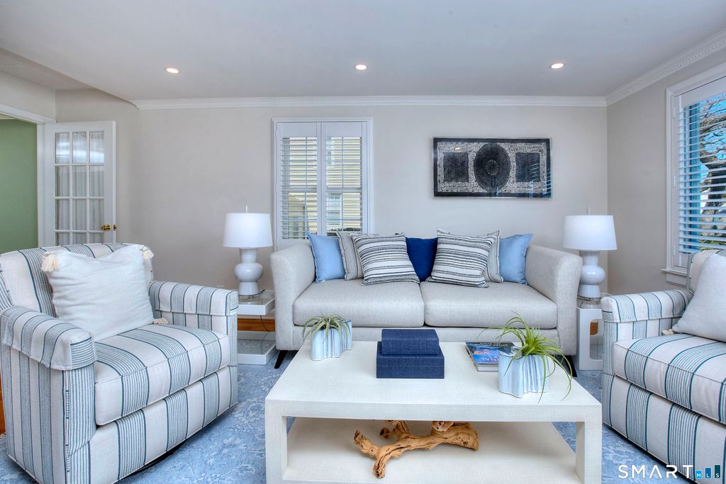 Welcome to this beach area gem on a popular IN-TOWN CULDESAC. Here you have WALKABLE CONVENIENCE to top-ranked neighborhood schools, main street shopping and restaurants, public beaches, golf and tennis. Easy commuting with Metro North trains only a half mile away or hop on Interstate 95. Stroll or bike to concerts on the Green, the Memorial Day Parade and Fourth of July fireworks on the beach. REFRESHED, NEW AND LOTS TO LOVE!! Fresh paint from top to bottom and the new and refinished solid hardwood stairs and flooring add to the cheer of this light-filled home.The kitchen features subway tile, shaker custom cabinetry, recessed and countertop lighting, stainless Bosch appliances, quartz countertops with a matching table that doubles as a center island. There is new recessed lighting in the front living room and the lower level rec room, which also has new carpet and new insulated windows. PRACTICAL AND FLEXIBLE LAYOUT: The Primary Bedroom suite is roomy enough for a king bed, and has walk-in closet outfitted with California Closet built-ins, vaulted ceiling, new skylights and remote-controlled shades. Three more bedrooms are on the same floor along with a full bath with tub, and window seat in the upstairs hall that makes a cozy reading nook. Natural gas mechanicals fuel central air HVAC throughout, and the freshly painted basement/workroom has a sink that's ready for a handyman or crafter. The Family room has a gas fireplace for cozy movie nights, and leads directly