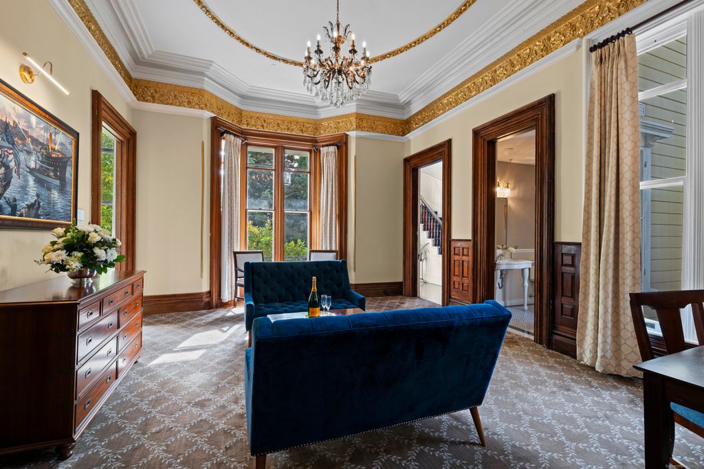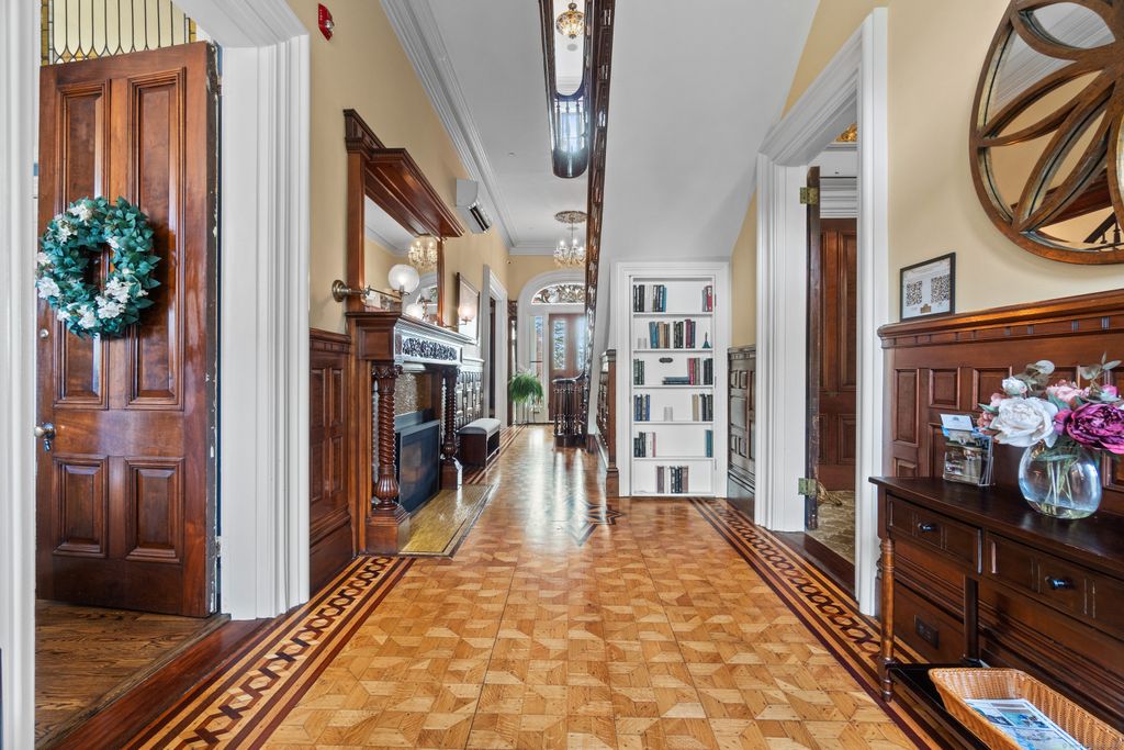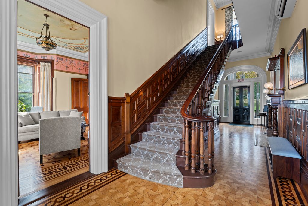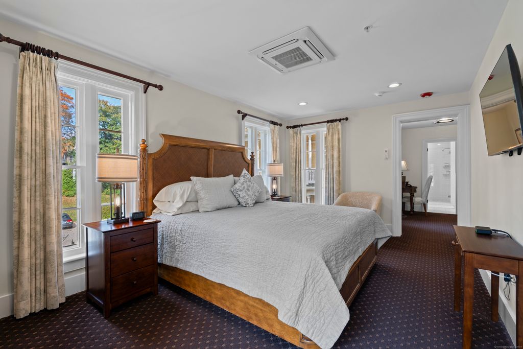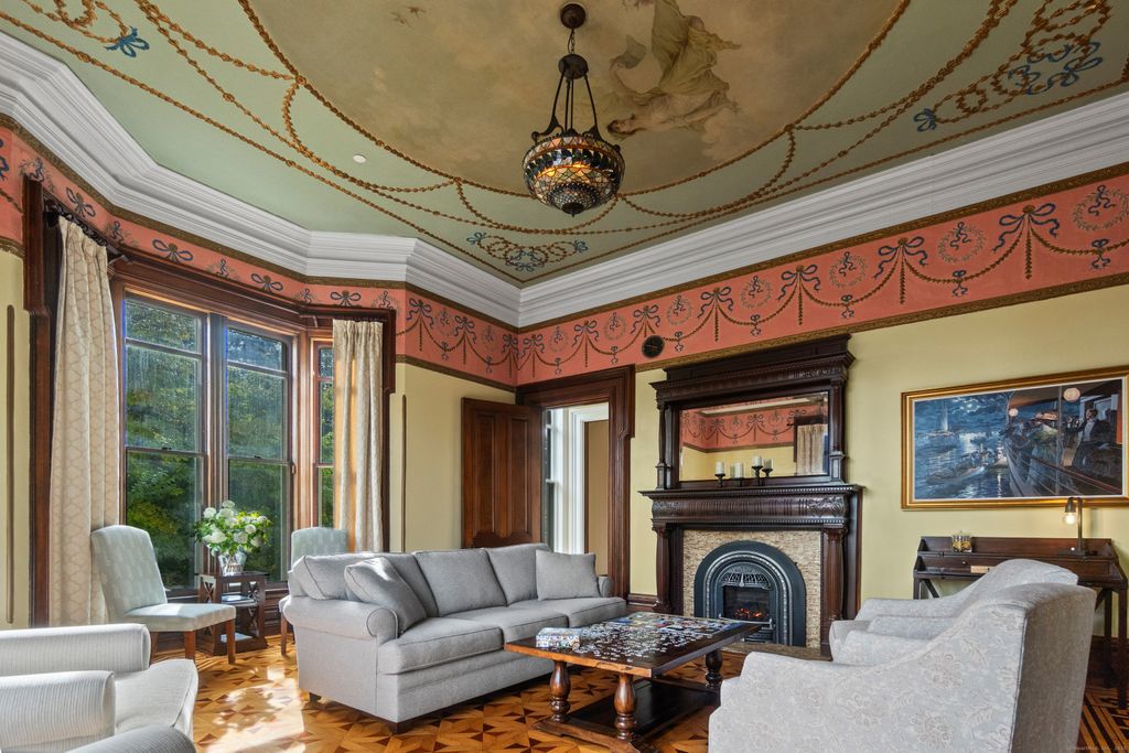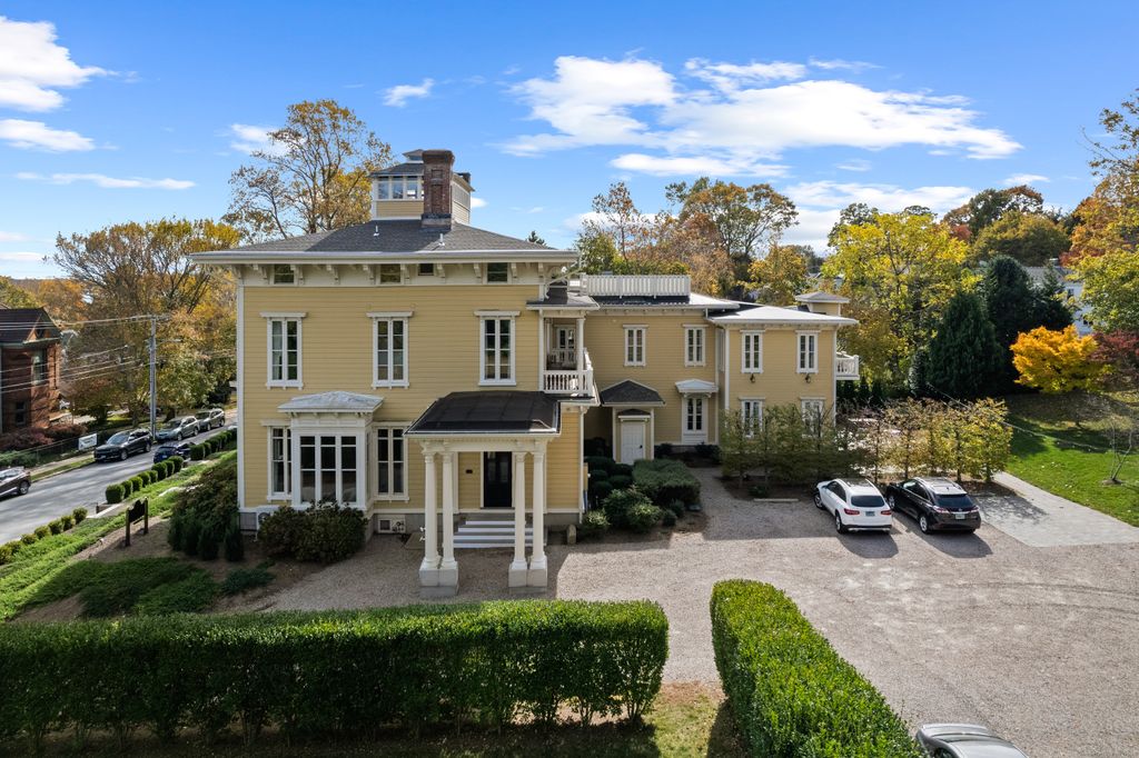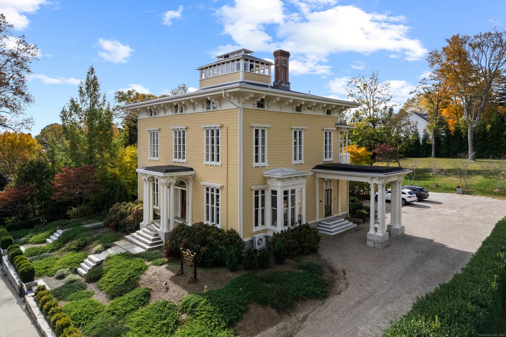 Iconic Historic Inn steps from Historic Downtown Mystic. Once-in-a-lifetime opportunity to live in this exquisite architectural masterpiece. Meticulous 10,500 Sq Ft Italianate Victorian with 8 Bedrooms, 8 Full Bathrooms and 3 Half Bathrooms all nestled on 1.49 manicured acres with private parking lot and porte-cochere. Featuring 3 grand parlors with hand-painted ceilings, full commercial kitchen with stainless steel counters, formal dining room for 30 with French Doors leading out to brick patio for Alfresco Dining. 5 beautiful ornate original fireplaces converted to gas. Serviced by municipal water and sewer. Also includes a registration area, and potential lower-level Speakeasy. Endless possibilities. Perfect for a boutique inn, buyouts, or luxury residence. Zoned for business or private use. Stunning tri-state views from the Belvedere. One of the most historically significant building in Mystic. A very rare investment opportunity in a prime shoreline location. This property blends History, Luxury and Functionality - ideal as a boutique inn, or private residence. Whether hosting small gathering under the stars on your brick patio or welcoming guests through the grand porte-chchere, every detail reflects timeless New England elegance. Discover this landmark estate where every minute feels like a dream and just steps to Historic Downtown Mystic!