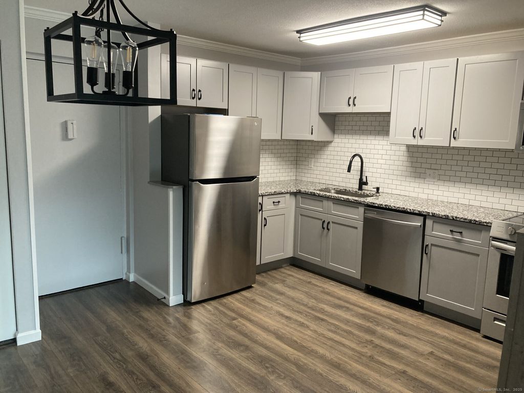 Welcome Home to Balance Rock! Totally Renovated 2 bedroom unit with level access (NO STAIRS) from parking area into unit. Features a beautiful gray Shaker Style Kitchen with granite and stainless steel appliances, open floor plan that includes the kitchen, dining area and living room with a large sliding door to your private covered balcony deck, primary bedroom with double closets, updated bath with tub/shower and tile surround, basement storage crib and laundry room. Balance rock common charges include your heat, hot & cold water, tennis courts, outdoor swimming pool, playground and a club house that can be rented for private parties. A MUST SEE condo ready for immediate occupancy.