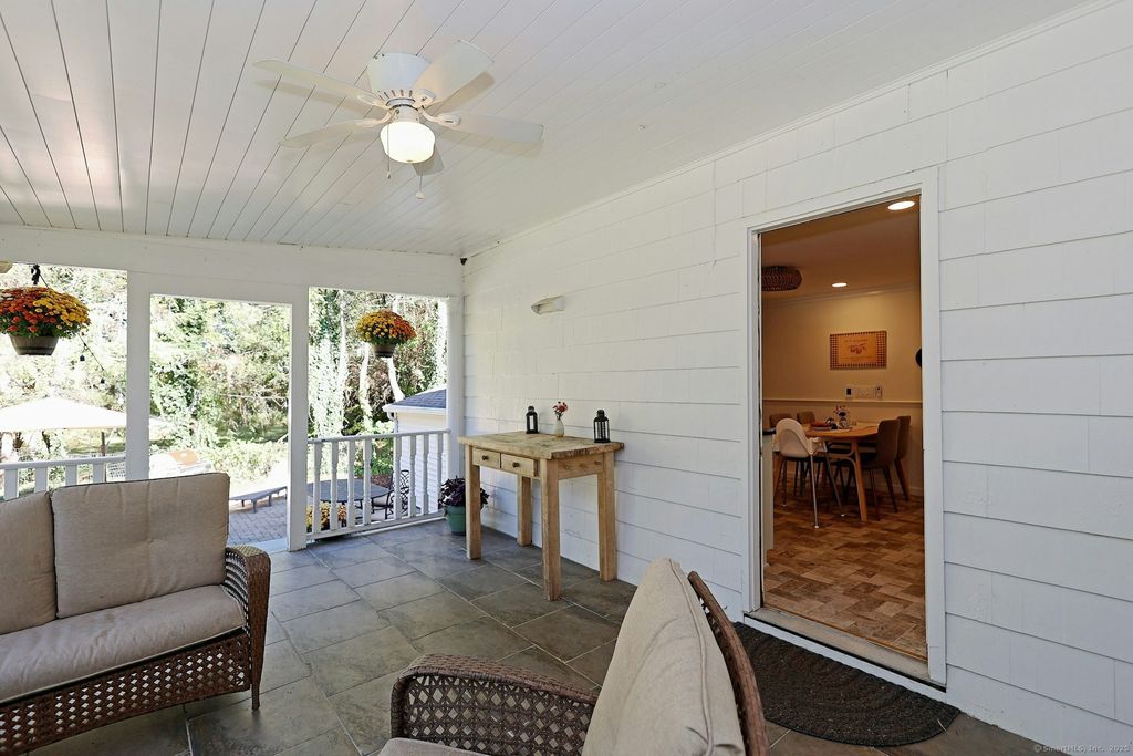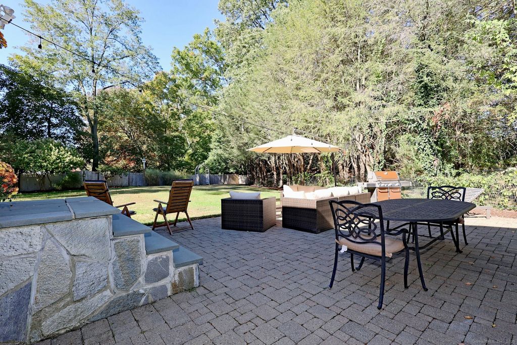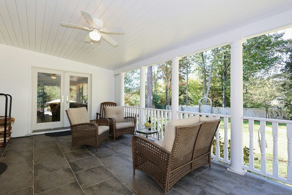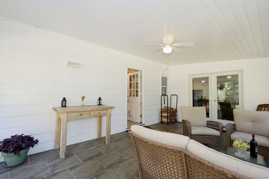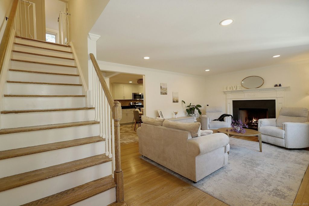 Welcome to this beautifully expanded, updated Cape situated within a quiet cul-de-sac in one of Fairfield's most sought-after neighborhoods. Step into the inviting formal living room featuring a cozy fireplace, bay window, refurbished hardwood floors, new lighting, and fresh paint. The eat-in kitchen, with entry to the covered back porch, has granite countertops, SS appliances including a new Miele dishwasher, heated flooring and new light fixtures. In the large family room you'll be struck by the oversized windows with views into the backyard and neighboring pond. The room includes ample storage, built-ins, a French door with direct porch access, new light fixtures, fresh paint and refurbished hardwood floors. A large bedroom and updated full bath round out the main level, offering comfort and flexibility for guests or single-level living. Upstairs you'll find a spacious primary bedroom, a cozy guest bedroom, a versatile 4th guest room/office/nursery, and full bathroom. The finished lower level offers even more living space with endless possibilities such as a media room, home gym, rec room, or office. It also includes a full bath, a laundry area with new Miele appliances, dedicated storage, and direct access to the two-car garage and backyard patio. Enjoy a tranquil, fully fenced, level backyard with a spacious patio and covered porch that is perfect for relaxing or entertaining. Located just minutes from downtown Fairfield's vibrant shops, dining, and beautiful beaches.