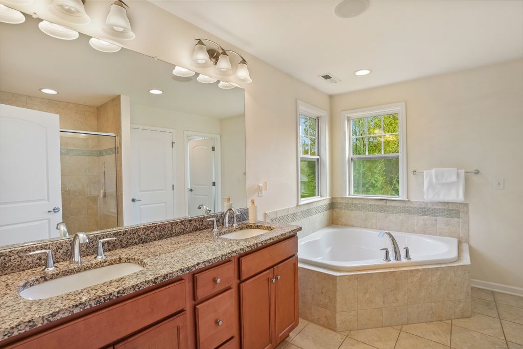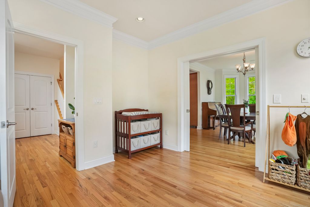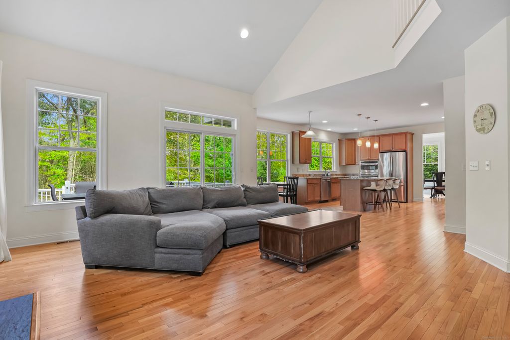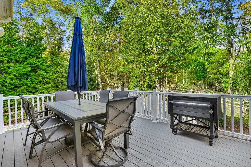 This custom home offers the perfect balance of sophistication, comfort, and natural beauty. From the moment you enter, soaring ceilings and an open-concept layout create a grand yet inviting atmosphere. The gourmet kitchen features a large center island and opens to a newer Trex deck, overlooking a beautiful bluestone patio-ideal for entertaining or quiet outdoor living. The great room offers soaring ceilings with a fireplace. The elegant dining room, enhanced with custom millwork and abundant natural light, provides the perfect setting for gatherings. A first-floor office/family room with pocket doors offers a refined workspace, while a powder room and gleaming hardwood floors complete the main level with style and convenience. The primary suite on the second floor is a private retreat, boasting a balcony, walk-in closet, additional closet, and a spa-inspired bath featuring a soaking tub, separate shower, and dual vanities. Three additional bedrooms are spacious and bright, complemented by a conveniently located second-floor laundry room. The two-car garage offers generous storage,The garage is wired for EV vehicles, and the high-ceilinged lower level provides endless possibilities for finishing, with sliders leading to a fully fenced yard. Set against the backdrop of the majestic Roosevelt Forest, this exceptional home offers direct access to scenic trails perfect for hiking, cross-country skiing, and year-round recreation-all within a peaceful, sought-after cul-de-sac