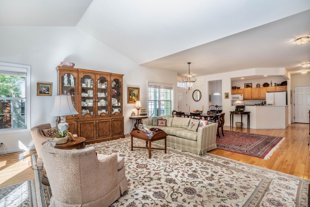 Discover the exceptional opportunity to own this meticulously maintained end-unit condo in the highly sought-after Oxbow Ridge 55+ community. Perfectly situated in central Canton, this home seamlessly combines generous square footage, privacy, and convenience, making it an ideal setting for active retirees and downsizers. The heart of this home features an open-concept design that flows effortlessly from the expansive eat-in kitchen throughout the dining and living areas, all with 9+ ceilings. Rich hardwood flooring in Dining-Living rooms adds warmth and elegance, while sliding glass doors lead to a private deck, an inviting backdrop for entertaining or enjoying quiet mornings with coffee. The main level includes a large primary suite, with a spacious WIC, and an expansive bath, with a large soaking tub and separate walk-in shower. The guest bedroom, featuring a large closet and a conveniently located full hall bath and laundry, completes the main level. On the upper level, you'll discover two additional rooms that are serviced by another full bathroom. This versatile space can be tailored to suit your lifestyle, whether you choose to use it as a home office, guest bedroom, creative studio, or hobby craft room. The possibilities are endless. Additionally, the unfinished basement offers ample storage, a cedar closet, and extra space to expand. Located within easy walking distance of the scenic Rails to Trails pathway, you're perfectly positioned to embrace an active outdoor