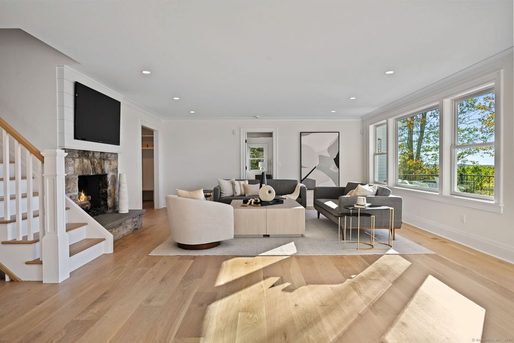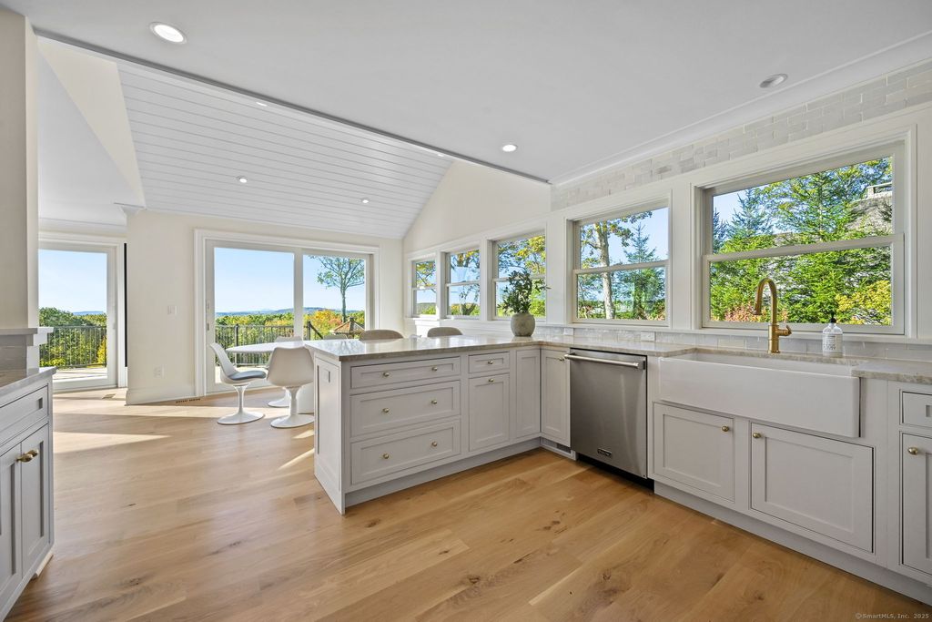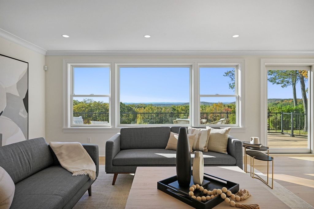 A masterclass in modern luxury, this breathtaking Ridgefield estate has been meticulously reimagined by premier builder Thomas Sturges Construction, achieving a rare balance of architectural brilliance, refined comfort, and energy efficiency, all set against awe-inspiring panoramic 50-mile views of the Hudson River Valley. Completely transformed, the residence unveils a sophisticated open-concept design where wide-plank oak floors, walls of glass and impeccable craftsmanship define every space. The chef's kitchen is a showpiece of form and function with natural stone counters, custom cabinetry and professional-grade Viking appliances seamlessly flowing into a chic dining area and luminous living room anchored by a sleek gas fireplace. The main-level primary suite is a private sanctuary, offering dual walk-in closets and a spa bath worthy of a five-star retreat. Upstairs, two additional ensuite bedrooms showcase exquisite finishes and elevated comfort. The lower level extends the living experience with a full in-law or au pair suite, complete with separate entrance, laundry and a stunning family room framed by stone-accented walls. Outdoor living is redefined with tiered decks, a granite patio, Wagner pool and spa and a romantic gazebo set amid manicured grounds. Great NYC commute. Perfectly sited minutes from Ridgefield's boutique shops, acclaimed dining and cultural attractions. An exceptional residence embodying the pinnacle of modern elegance and timeless craftsmanship!