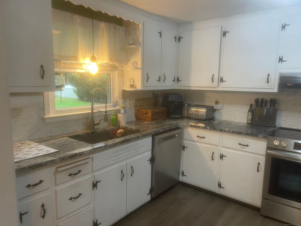 Great move-in ready home located in a convenient Plainville neighborhood. It offers a kitchen, Livingroom with FP and built-ins, Dining Room, 4 bedrooms and 2 full bathrooms, one with a large jacuzzi tub. The 4th bedroom has a private entrance and a full bath, ideal for home office, guest suite or studio. Main living area with Luxury vinyl flooring, and hardwood floors in all bedrooms. Step outside to find a level, fenced in rear yard with a patio with trellis with a mature Wisteria vine. Just minutes to the Farmington Line, Paderewski Park, the YMCA, Restaurants and Shopping!