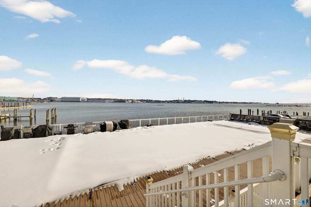 First-floor waterfront condo offering 722 square feet of comfortable living in a professionally managed complex. This street-side unit provides convenient ground-level access with elevator service available throughout the building. Amenities include an in-ground pool with stunning Thames River views, common area laundry, and secure intercom entry system. The U-shaped front entrance features a convenient drop-off area for residents and guests. Monthly HOA fees include heat, water, hot water, and sewer for predictable expenses. One assigned exterior parking space (#70) included. Dock space available to owners on a first-come, first-served basis for an additional fee-perfect for boating enthusiasts. The location offers exceptional walkability to restaurants, quick bites, marinas, and EB's New London site. Ocean Beach, Lawrence & Memorial Hospital, Amtrak Train Station, and Cross Sound Ferry to Long Island are all nearby. This condo delivers low-maintenance living with easy highway access, walkable amenities, and the opportunity to enjoy waterfront breezes and river views from the pool deck. Ideal for professionals, commuters, or anyone seeking carefree coastal living.
