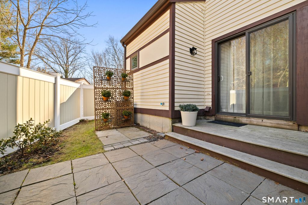 Desirable end-unit townhome tucked at the back of the complex, offering exceptional peace and privacy. The inviting living room features a cozy fireplace and sliding doors that open to your own private patio and garden, just perfect for relaxing or entertaining. The second floor, with two roomy bedrooms, boasts a new Jack and Jill bathroom, with a tiled shower and freestanding soaking tub. The convenient in-unit laundry is by the bedrooms and the third floor is a finished loft with a skylight; ideal for a home office, guest space, or creative studio. Add a detached garage, with a locking storage room, and the home is complete! Rockledge is ideally located; minutes to I-95 and Route 15, approximately 9 miles to Yale New Haven Hospital, and only a short walk to Downtown Branford and the Town Green with shops, dining, and community events. This townhome is a wonderful combination of comfort, quiet living, and a prime location, all in a well maintained-setting.