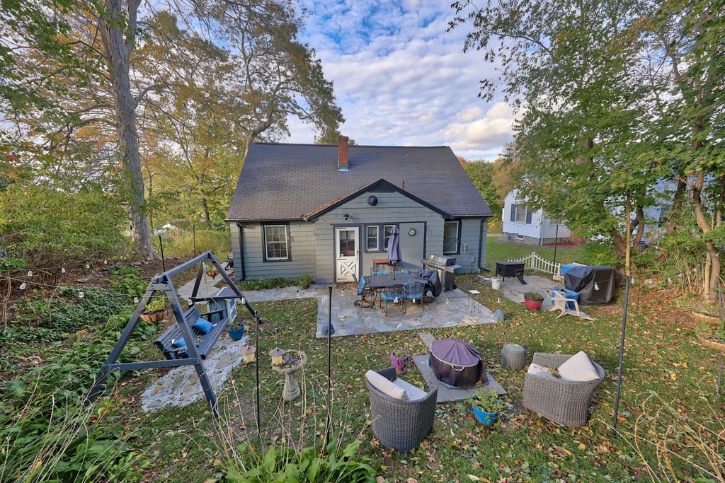 Welcome to this inviting Cape Cod home offering 3 bedrooms and 2 full baths, perfectly blending charm and functionality. Thoughtfully designed, the main level features refinished hardwood flooring (except for the bath & kitchen) two comfortable bedrooms (both freshly painted) and a full bath-an ideal layout for those seeking convenience and flexibility. The freshly painted dining room is enhanced by built-in hutches, adding both character and storage. The living room with bay window allows the natural light to stream in. The kitchen provides ample space for dining, room for an island and a door leading to the stone patio and walkway that wraps around the side of the home, creating a seamless flow for entertaining or relaxing outdoors. Upstairs, the spacious bedroom with HW flooring and a full bath offers the opportunity to create your own primary suite retreat. The partially finished lower level adds even more living space, perfect for a family room, home office, or hobby area. With its central location close to major commuter routes, dining, and shopping, this home provides both comfort and convenience. See attachments for upgrades completed over the years. Follow this home on FinalOffer.com for instant updates and offer alerts. Audio & Video surveillance on property. Schedule your private tour today and make this versatile property your own!