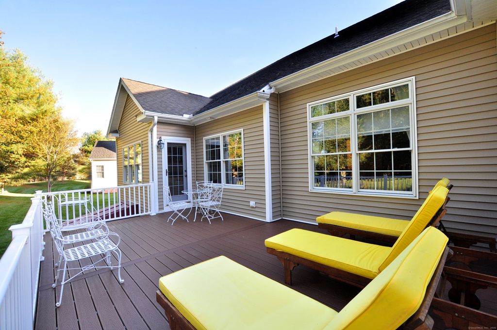 Beautiful Custom One-Owner Home in the Highly Desirable Hunt Glen Community. Welcome to this sunny, spacious, and beautifully customized home in Granby's premier active adult neighborhood. Thoughtfully crafted by the original owner in collaboration with the builder, it features expanded square footage, elegant tray ceilings, and a flexible layout designed for both comfort and entertaining. With 2,539 sq. ft., this inviting residence offers 2-3 bedrooms, Perfectly positioned on a peaceful lot, it showcases lovely landscaping, a welcoming front porch, and an easy, low-maintenance lifestyle. Inside, you'll find a spacious dining room with a tray ceiling and hardwood floors, and a chef's kitchen boasting abundant cabinetry, generous counter space, and newer stainless-steel appliances. The kitchen flows seamlessly into a cathedral-ceiling living room with a gas fireplace and access to a newer oversized Trex deck-perfect for relaxing or entertaining. The first-floor primary suite features a walk-in closet and full bath with double sinks and a shower. A guest bedroom, half bath, and first-floor laundry complete the main level (gleaming hardwood throughout except guest bedroom). Upstairs, enjoy a large family room, office, half bath, and walk-in closet, providing flexible space for guests, hobbies, or a home office. The full basement with hatchway and updated furnace and A/C offers excellent storage and future possibilities. The community clubhouse