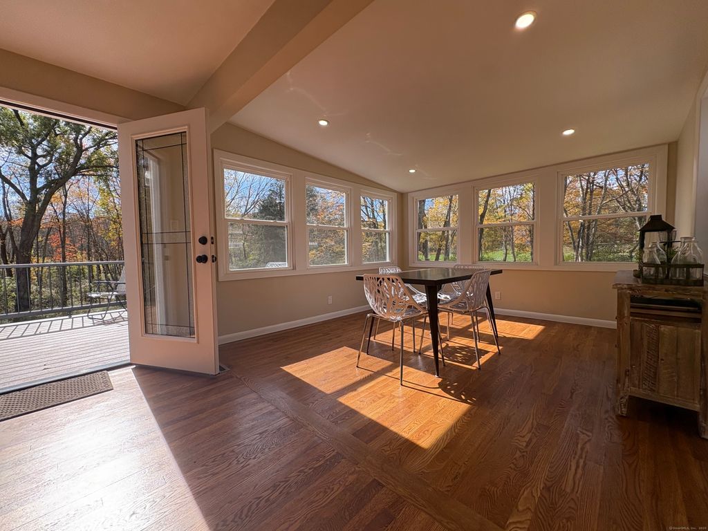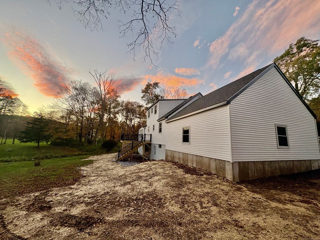 Charm and modern comfort come together in this beautifully renovated 3BR, 2BA home set on nearly an acre along a quiet country road in Woodbury. The inviting main level features a cozy living room with a fireplace, a spacious first-floor bedroom, and a full bath-perfect for guests or one-level living. A newly updated kitchen opens to the dining area and leads directly to a brand-new deck overlooking a private, level backyard with distant pond and mountain views. The yard has been cleared, seeded, and extends to a peaceful meadow that backs to a wooded preserve. The recent expansion includes an oversized two-car garage, extra deep with high ceilings offering loft or workshop potential. The full basement offers tall ceilings, ample storage, and rear exterior access to the leveled backyard. Adjacent to the basement door is an additional versatile room ideal for outdoor storage, tools, or a creative workspace. Move-in ready and turn-key, this home blends New England charm with thoughtful updates and serene surroundings that will certainly delay everyone who walks through the door of this one of a kind home situated on an extremely private lot. Come see it and don't miss this opportunity to own an oasis in Woodbury. Added highlights include a new furnace (2025), new septic tank (2025), newer whole-house propane generator, and a roof approximately 10 years old.