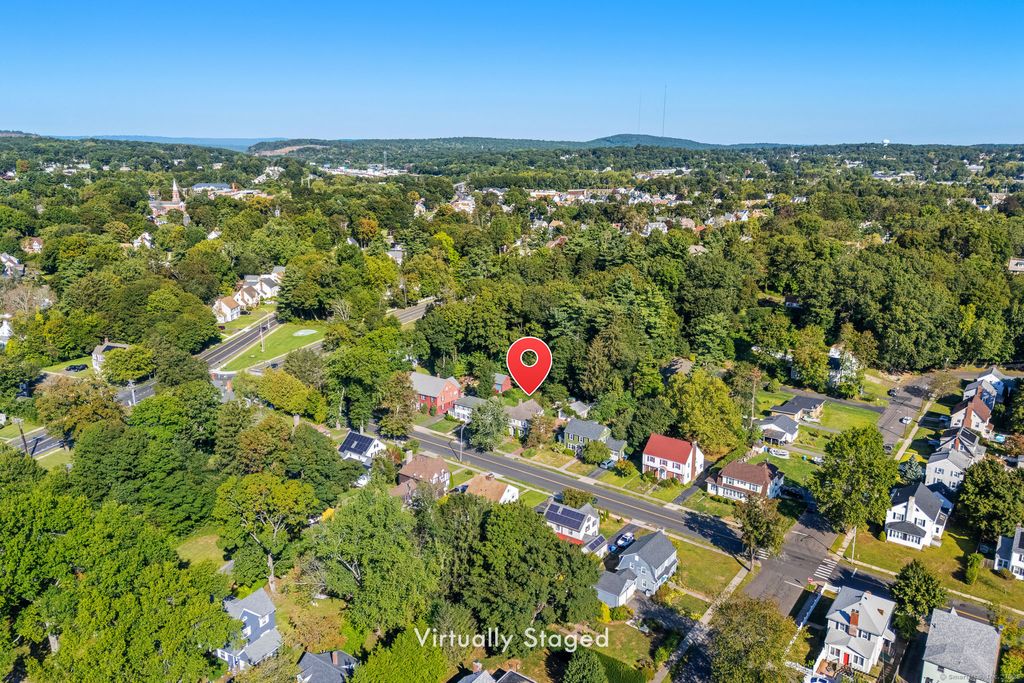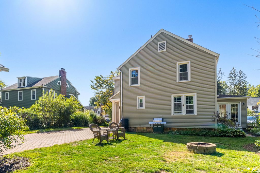 Back on market due to no fault of the Sellers, here is your second chance at 423 Monroe Street, New Britain - a classic Colonial offering space, functionality, and a flexible layout to fit a variety of needs. This 4-bedroom, 1.5-bath home features a practical floor plan with plenty of natural light and useful spaces throughout, including offices on both the main and upper levels. The main floor includes a large, sun-filled living room with wide windows, built-in bookshelves, and a fireplace. French doors open to a bright family room with access to the backyard and a stone fire pit, great for outdoor use. The dining room features a built-in hutch and connects directly to a kitchen with ample cabinet space. A main-level office provides a quiet area for work or study, and a half bath completes the first floor. Upstairs are four well-proportioned bedrooms, a full bath, and a second office - ideal for remote work, school, or additional storage. The primary bedroom and others each have their own closet and natural light. The finished basement, currently used as a personal winery, adds bonus living space. The laundry area is located behind French doors for easy access. Outside, the property includes a detached two-car garage, brick driveway, front garden, backyard treehouse, and a small shed for extra storage.