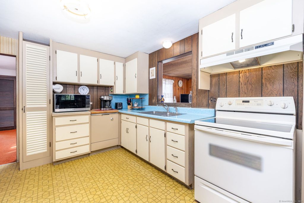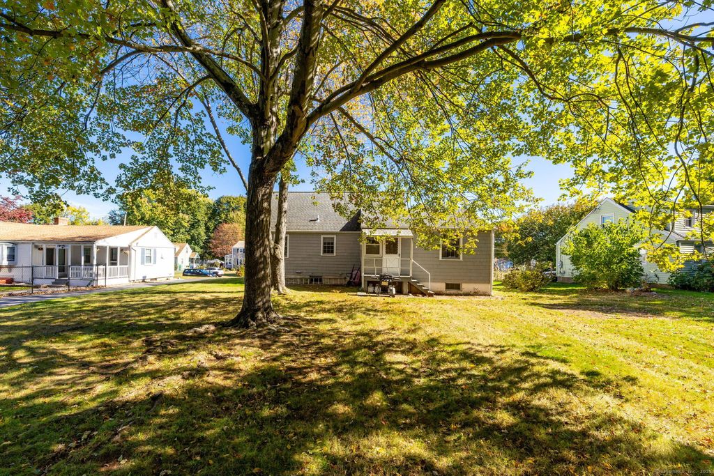 Tucked away in a neighborhood off of Main Street near Newington's Town Center, is this vintage 3 bedroom cape that time forgot. The main floor has a great floor plan: fireplaced living room, dining room, eat-in kitchen with a dutch door to the back porch to access the backyard, plus a large front-to-back family room, primary bedroom, and a full bathroom! Upstairs there are 2 more bedrooms, both with hardwood floors. The basement has a partially-finished and heated room, plus laundry/utility/storage, and access to the 1-car garage. There's a front entry with a large porch for decorating, and a beautiful, flat backyard. All of this on 0.27 acres in a great location! Roof 14 years old, hot water heater 3 years old. This home has been well-loved by the same family for 51 years and does need some repairs. Sold in AS-IS condition.