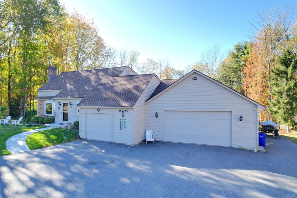 Discover the charm of this spacious contemporary Cape, set on a peaceful one-acre lot in a desirable rural neighborhood. Offering over 3,000 square feet of living space, this well-maintained home provides a flexible layout ideal for today's lifestyle. The main level features a formal living room, dining room, updated kitchen, den, sunroom with fireplace and hot tub, full bath, and convenient laundry area. From the kitchen and sunroom, step out to a private rear deck perfect for relaxing or entertaining. Upstairs you'll find three comfortable bedrooms and a full bath. The lower level offers an additional 1,000 square feet of finished space - an ideal area for gatherings, hobbies, or a recreation room, along with a separate home office. Car enthusiasts and hobbyists will appreciate the impressive garage space, complete with its own heat and air conditioning. Recent updates within the past five years include the kitchen, garage A/C, and driveway, with additional improvements such as newer windows, baths, and hardwood floors. The roof on both the home and barn was replaced just two years ago. The barn provides great additional storage and versatility. A unique property combining space, function, and rural tranquility for the outdoor enthusiasts - come see all that 197 Spencer Hill Road has to offer!