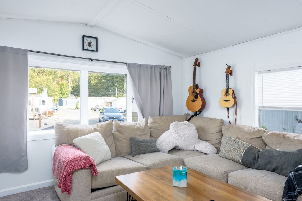 Photos coming by 10/19/2025 . Stylishly renovated and move-in ready! This beautifully updated 2-bedroom, 1-bath home features a new roof, gutters, siding, appliances, tile counters, flooring, sheetrock, and fresh paint throughout. Enjoy comfortable one-level living with central air, forced-air heat, and propane hookups. Tucked in a quiet Southington community off Queen Street, this home offers effortless access to shopping, dining, and major routes. Includes a private storage shed, full-size washer/dryer, and a land lease covering water, sewer, snow removal, and leaf pickup.