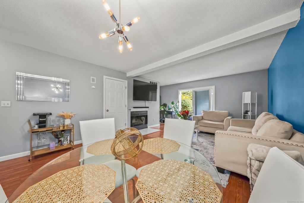 This stylish 2 bedroom condo with a rear private deck, offers 1.5 baths, tastefully decorated and updated. The spacious living room/combination dining room features a fireplace and opens directly to a private deck-perfect for relaxing outdoors. Both baths have been fully remodeled, offering modern finishes and fresh appeal. Additional highlights include an oversized one-car garage that features a separate utility/laundry room, allowing you ample storage. A brand-new hot water heater has been installed. Visitor parking is close to unit, Pet friendly (with approval from HOA).