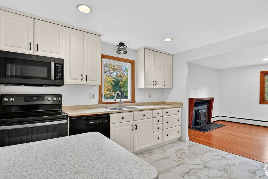 This beautifully updated ranch has so much to offer, set on a spacious .72-acre lot with a detached 2-car garage and a fully finished lower level! Step into the inviting living room with newly refinished hardwood floors and a large bay window that fills the home with natural light. The layout flows seamlessly into a tiled kitchen with plenty of space to maneuver, an eat-in island, and an adjoining dining room with a charming corner hutch, perfect for family gatherings. The main level features two bedrooms with fresh hardwood floors and a full bath with updated tile and a tub/shower combo. The finished walkout basement adds incredible versatility with electric heat, carpeted living space, a tiled full bath with standing shower, and room for two additional bedrooms or an office, ideal for an in-law setup or guest space. Outside, enjoy a brand-new septic system, level yard, and plenty of room to relax and entertain. Truly a turn-key property that blends updates, comfort, and functionality in one perfect package.