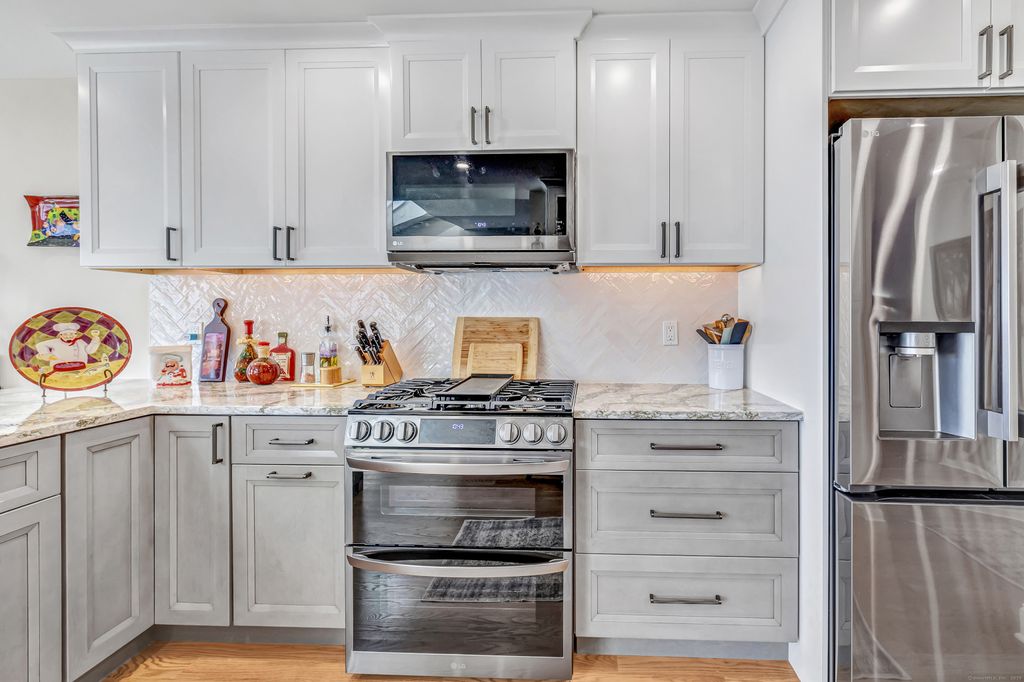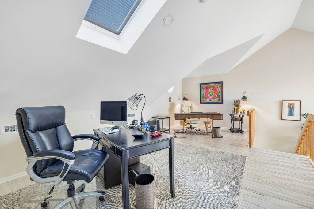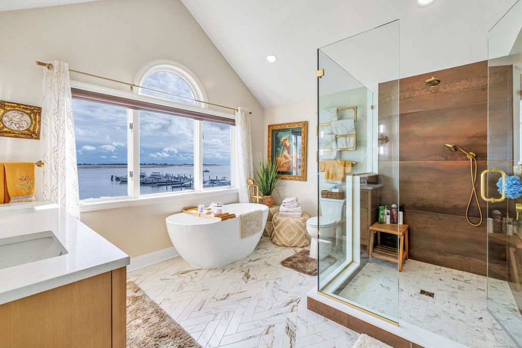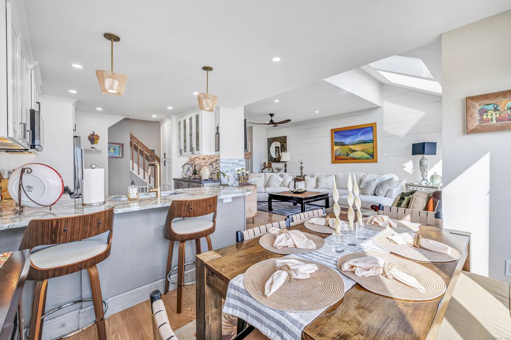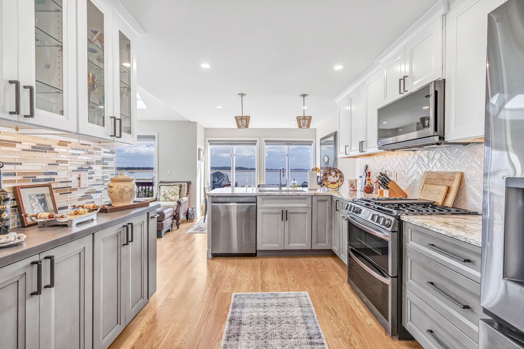 Feel like you're on vacation every day! Beautiful water views from this sought after unit in Harbour Woods Complex in the Lordship Neighborhood of Stratford CT. Offering over 2000 SF of living space, this beautiful, remodeled unit offers 2 bedrooms, 2.5 bathrooms, & water views from practically every room. The open floor plan is perfect for entertaining family and friends. Enter the unit into the living room which features newer wood-like flooring, working fireplace, shiplap, and sliders to a private deck which is perfect for grilling and enjoying the breathtaking water views. Living room leads to a remodeled kitchen w/a gas range, stainless steel appliances, garbage disposal & granite counters. The upper-level features 2 beautiful, remodeled bedroom suites w/lots of natural light. The primary bedroom is luxurious and offers a walk-in closet, upstairs loft, full luxury tiled bathroom w/deep tub shower, dressing table, & magnificent views of the river & marina. The primary bedroom also features an upstairs loft which is perfect for an office or relaxation space. The second bathroom is spacious & also offering a full bath w/washer and dryer. This unit has an attached 1 car garage & room for another car in driveway. There are many amenities to enjoy which include a heated swimming pool, sprinkler system, and access to Stratford's beautiful beaches. This unit is great for commuters w/easy access to Metro North Train & 95, shopping and restaurants. (60 Miles to NY City)