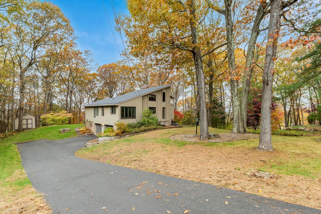 Welcome to this well-maintained 3-bedroom, 2.5-bath home on a lightly wooded corner lot in Vernon. Situated on a quiet street with a distant mountain view from the living area, this home features an under-house double garage and a spacious layout designed for comfortable everyday living. The main level offers a generous living room with oversized windows and a slider that opens to a back wooden two-level deck overlooking the backyard. A stone-accented fireplace serves as a focal point, adding warmth and character. The adjacent sitting and dining areas both open via sliders to the deck, providing excellent natural light and seamless indoor-outdoor flow. The kitchen features ample cabinetry and a center island for added workspace. On the main floor the primary bedroom includes its own full bath. There's also a versatile extra room currently used as an office, plus a convenient half bath. The lower level (basement) offers two good-sized bedrooms, a full bath, and direct access to the under-house double garage. Outside, the two-level deck overlooks a peaceful backyard-ideal for relaxation or entertaining-and a storage shed provides space for tools or outdoor equipment. Located just minutes from I-84, this home offers quick access to shopping, restaurants, schools, and local amenities along Hartford Turnpike and Talcottville Road.