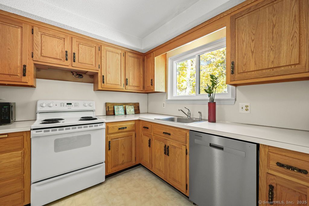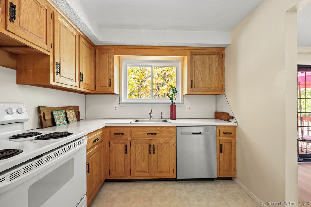 Welcome to Your Charming Farmington Retreat! This beautifully updated end-unit 2-bedroom, 1-bath townhome-style condo is nestled in a small, well-maintained community in highly desirable Farmington. Located in a rarely available complex, this bright and inviting home features two levels of living space and a dining area with sliding doors that lead to a private deck overlooking a lightly wooded area. Recent upgrades include: Brand New windows throughout, Fresh paint for a crisp, modern feel, Brand New kitchen dishwasher for added convenience, Brand New flooring for a clean, contemporary look, Brand New stackable washer and dryer in the upper-level laundry area, New water heater installed in 2023 and Central air conditioning for year-round comfort. Professionally cleaned air ducts and events in July 2025. Enjoy a serene lifestyle with direct access to biking trails connecting Avon, Simsbury, Canton, and New Hartford, plus plenty of nearby hiking and fishing spots. Commuters will appreciate the proximity to major routes, highways, UCONN Health Center, shopping, restaurants, and public transportation. The location is exceptionally walkable-just minutes from the town center for all your daily needs. Additional highlight includes Assigned parking for two vehicles.
