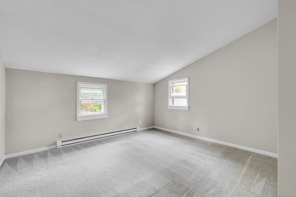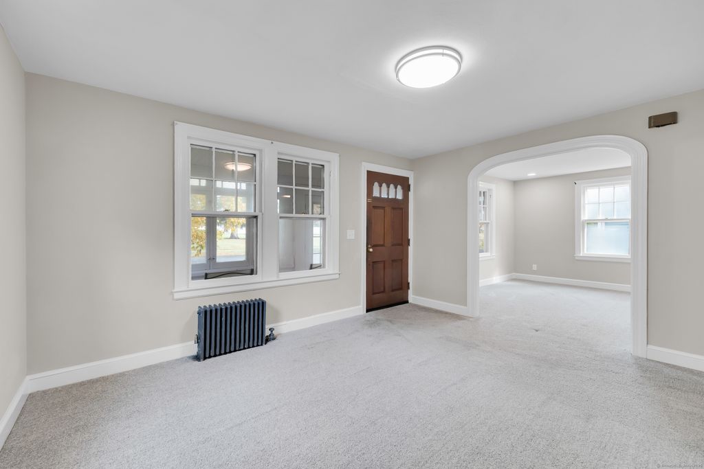 This warm and inviting Cape is filled with character and comfort from the moment you step inside. The main level features an open flow between the living and dining areas, highlighted by a beautiful exposed wood beam and a charming brick stove insert that anchors the space. Sunlight pours in through large windows, enhancing the home's natural charm and creating a welcoming atmosphere. The kitchen offers plenty of room to cook and gather, with a layout that blends vintage appeal and opportunity for your own updates. Upstairs and down, you'll find four comfortable bedrooms with generous closets, plus two remodeled bathrooms with modern tile and fresh finishes. Additional updates include new carpeting, fresh interior paint, and a bright enclosed porch that adds even more versatile living space. Step out back to the private deck and enjoy a peaceful yard surrounded by mature greenery - perfect for relaxing or entertaining. Located in a quiet, established Bristol neighborhood close to local restaurants, shopping, and major routes, this home offers everyday convenience and timeless charm. Immediate occupancy available - get in before the New Year!