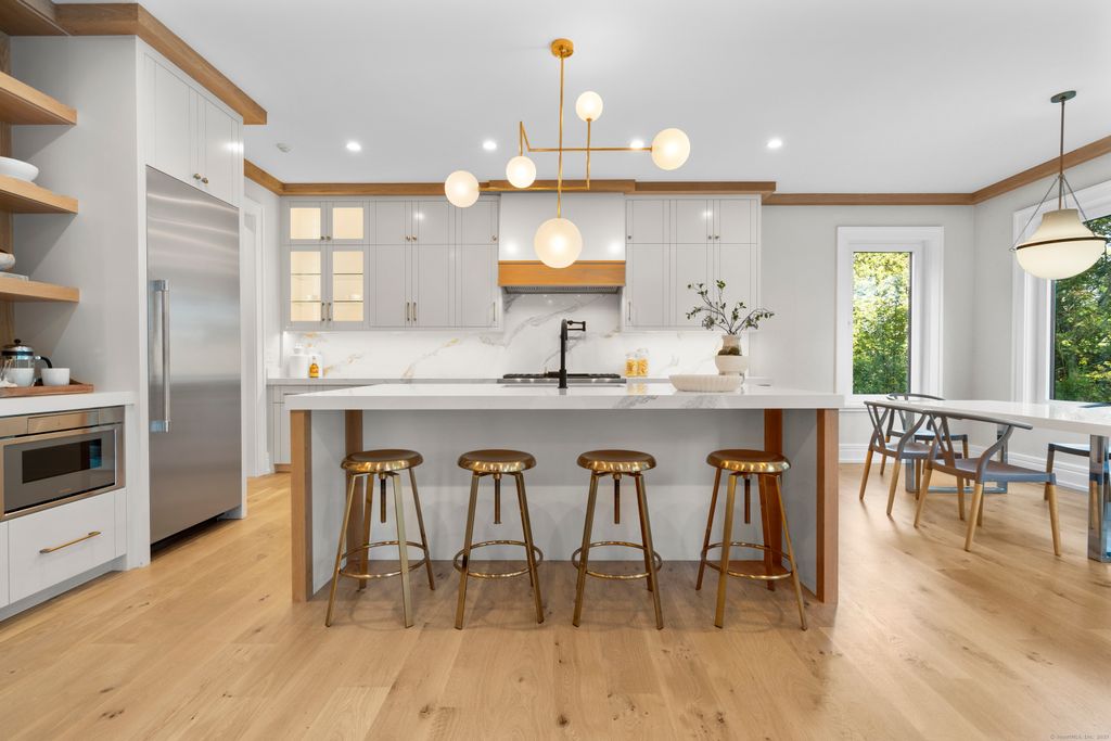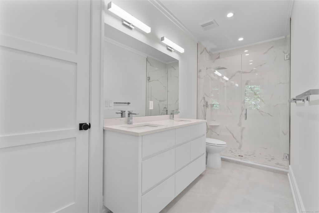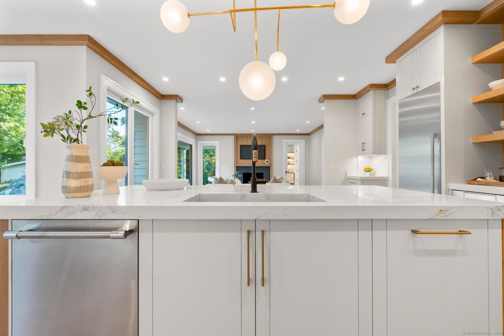 Exceptional NEW CONSTRUCTION - Walk to Town - Experience refined luxury living in this custom-built home by V&A Construction Inc., a respected local builder highly regarded for exceptional craftsmanship, meticulous attention to detail and upscale finishes. Set near Great Island and Pear Tree Point Beach, this home offers the best of coastal living with the ease of everyday convenience, just a short walk to shops, restaurants and the train. Inside, handcrafted cabinetry and millwork, wide-plank white oak floors, soaring ceilings, and imported European windows and doors highlight a commitment to timeless design and superior quality. The grand foyer opens to beautifully appointed living and dining rooms, a private home office and a designer kitchen featuring a breakfast nook, top-tier appliances and a fully equipped butler's pantry. A spacious mudroom with abundant storage includes access to a back staircase leading to the second floor, while a separate staircase provides direct access to the expansive lower level, ideal for a gym, media room, game room and more. The second floor features five generously sized bedrooms, including a luxurious primary suite with dual walk-in closets and a spa-inspired bathroom with premium fixtures. A generous third-floor loft provides flexible space for a playroom, additional home office or cozy retreat. This award-winning builder is dedicated to creating only the highest caliber homes. Rarely offered and not to be missed.