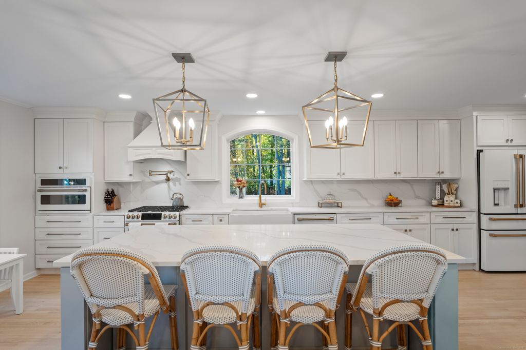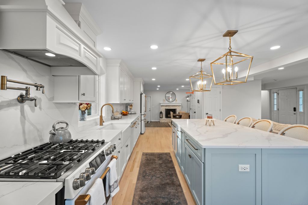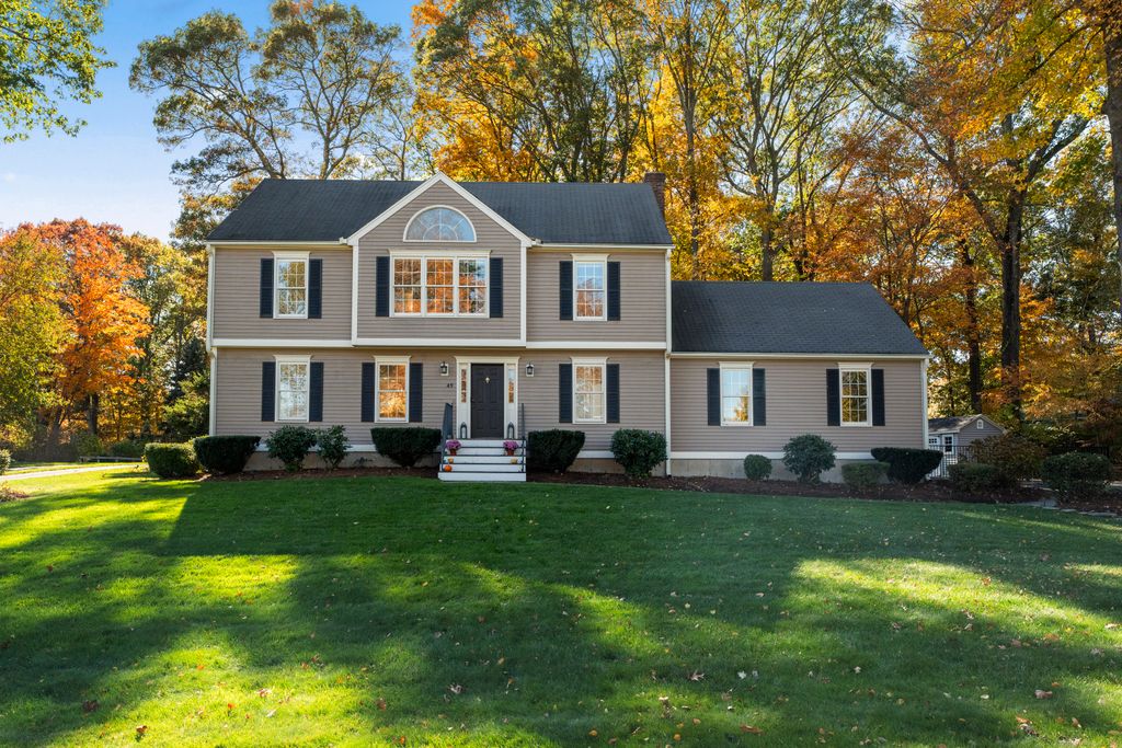 Tucked away at the end of a peaceful cul-de-sac, this stunning Colonial blends classic charm with modern updates. Step inside to a bright, open floor plan where the heart of the home - the stunning remodeled kitchen - immediately impresses. Designed with both style and function in mind, it features a striking 9-foot island, gleaming quartz countertops, GE Cafe appliances, and ample space for gathering with family and friends. With plenty of cabinets and a roomy pantry, storage will never be a problem! Open to the family room, complete with a cozy gas fireplace, creates the perfect spot for relaxing evenings, while the formal dining room, accented by its own fireplace, offers an elegant setting for entertaining. A remodeled powder room and a beautifully updated sunroom - now designed for comfortable four-season use - complete the main level. Upstairs, the serene primary suite serves as a peaceful retreat with room to unwind. Three additional bedrooms offer comfort and versatility, with one easily serving as a home office or guest space. Step outside to a private backyard oasis - completely fenced and level, ideal for play or pets. The expansive deck with a built-in gas line for the grill sets the stage for memorable gatherings and effortless outdoor entertaining. Meticulously maintained and thoughtfully updated, this exceptional Colonial is truly move-in ready - offering warmth, elegance, and modern convenience in one of the area's most desirable locations.