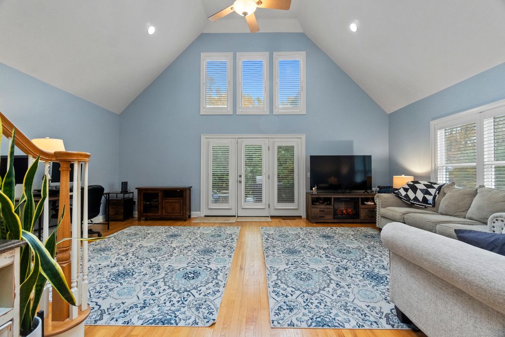 Flooded with natural light, this stunning 2-bedroom, 2-bath condo offers effortless style and comfort from the moment you step inside. Freshly painted and move-in ready, this home is nestled within a beautifully maintained community surrounded by mature, professionally landscaped gardens. Enjoy resort-style amenities including an inground pool, tennis courts, and a clubhouse. Inside, dramatic two-story windows fill the space with sunlight, highlighting the gleaming hardwood floors throughout. The updated kitchen features granite countertops, stainless steel appliances, and a seamless connection to the open-concept living and dining areas - perfect for entertaining or relaxing at home. Upstairs, a spacious loft overlooks the main living area and leads to a versatile den currently used as a bedroom. The primary suite is a peaceful retreat with a generous layout, full bath, and the convenience of in-unit laundry. Step outside to your private deck, thoughtfully bordered by arborvitae for added serenity and privacy.