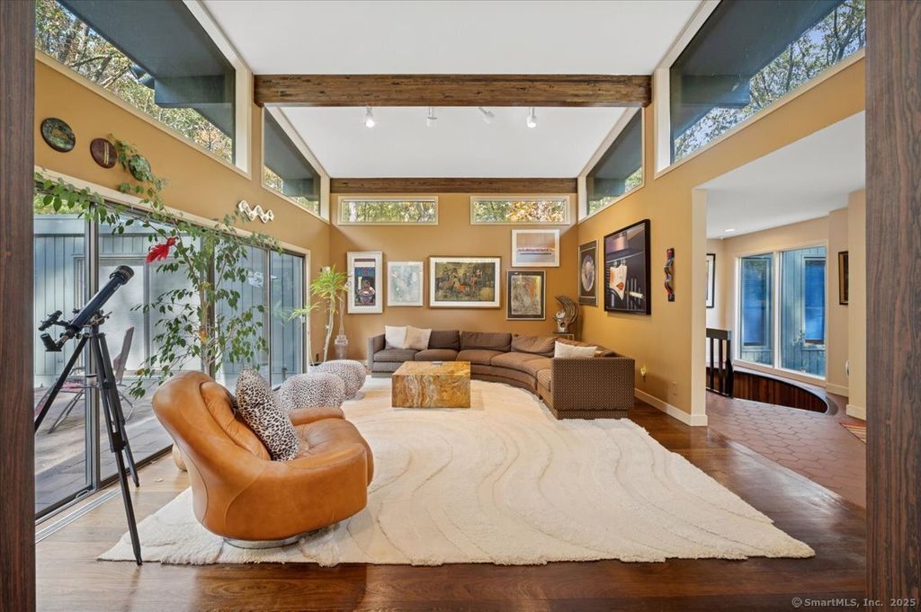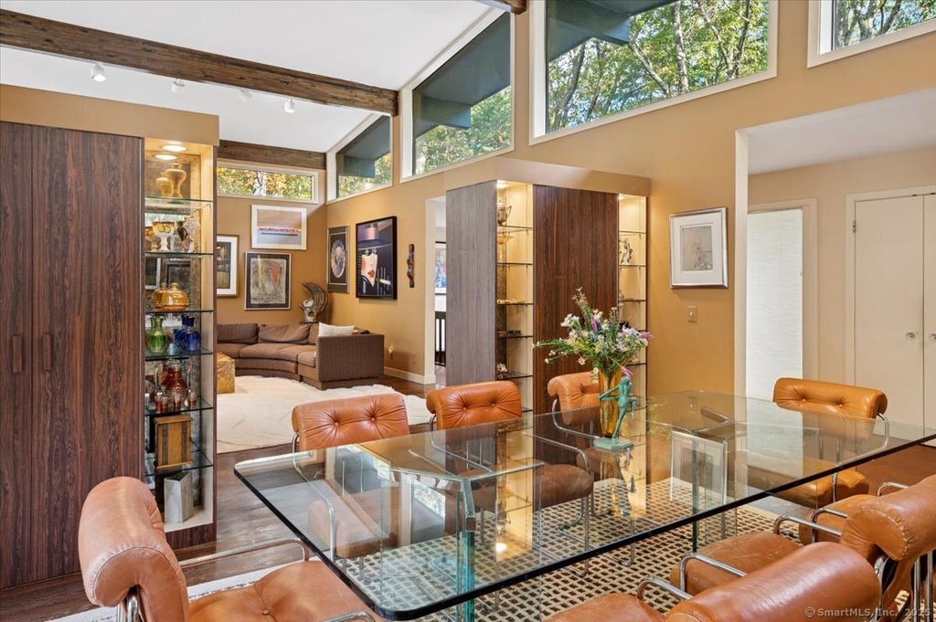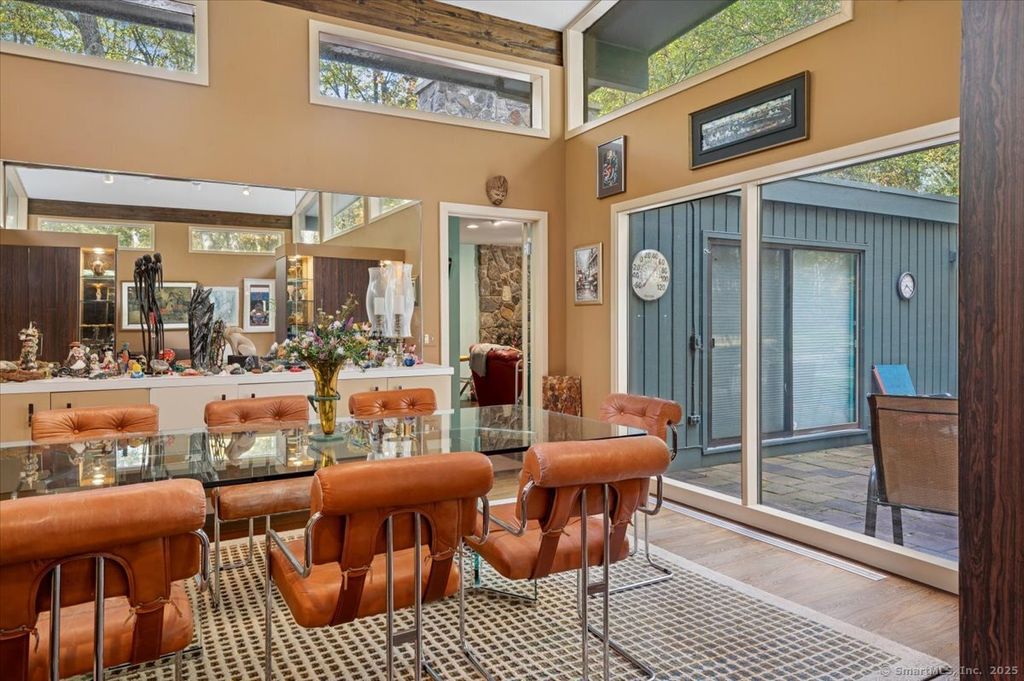 Custom built by the current and original owners, welcome to an rare opportunity in sought-after lower Easton. This rare and true one-of-a-kind home harmonizes a nature lover's dream with a vintage late mid-century vibe. The home spans over 3,100sqft on the main living level boasting three ensuite bedrooms at one end of the home and a private office, kitchen and den at the other end of the home. The formal dining room opens to the living room, both with soaring ceilings and original built in mid-century cabinetry anchoring the heart of the home. Enjoy an additional 2,953sqft in the finished walk out lower level offering a fourth and possible fifth bedroom, billiard room, family room, and a floor to ceiling stone fireplace. This modern structure offers original aesthetics fitting of the era transporting guests back in time. A sprawling estate offers a country club setting for multiple generations to simultaneously enjoy. Functional and thoughtful layout centralizes the focus on the courtyard pool and provides ample space for entertaining with large connected common rooms. Floor to ceiling windowed walls artfully invite the outside in creating a harmonious connection with the picturesque surroundings. The large glass elements flood the interior with natural light, enhancing curated living spaces and offering views of the verdant landscape beyond with pool and stone patio and tennis court found on the rise of the property. Live here and love life.