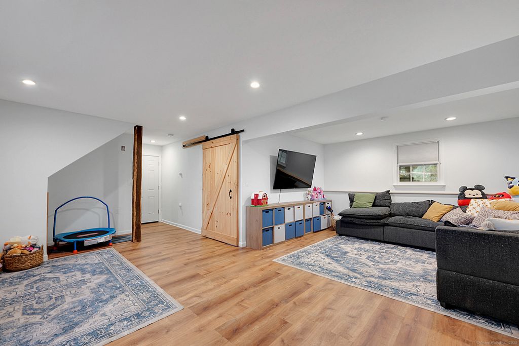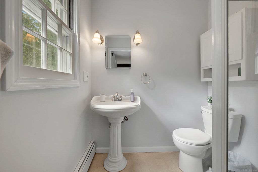 Set at the top of a private driveway, this tastefully updated raised ranch offers comfort, style, and the perfect blend of indoor and outdoor living. Nestled against a peaceful natural backdrop, this home features a thoughtfully designed layout and modern upgrades throughout. The heart of the home is the sunny kitchen, complete with granite countertops, a breakfast bar, and an open flow into the dining room. Sliders lead out to private decks-ideal for relaxing or entertaining. The spacious living room boasts a charming bay window and a cozy fireplace with a wood-stove insert, creating a warm and inviting atmosphere. The main level features hardwood and tile flooring throughout, a stylishly renovated full bathroom, and three well-sized bedrooms. The primary bedroom includes its own full bath with a pedestal sink and stand-up shower for added comfort. Downstairs, the finished lower level expands your living options with luxury vinyl plank flooring and a second fireplace-also with a wood-stove insert-making it the perfect space for guests, remote work, learning, or entertaining. Additional highlights include central air conditioning, a newly painted deck, new front door, and new garage doors. Conveniently located in close proximity to all that Southbury and nearby Oxford have to offer, including shopping, dining, parks, and commuter routes-this move-in ready home combines comfort, functionality, and a beautiful natural setting.