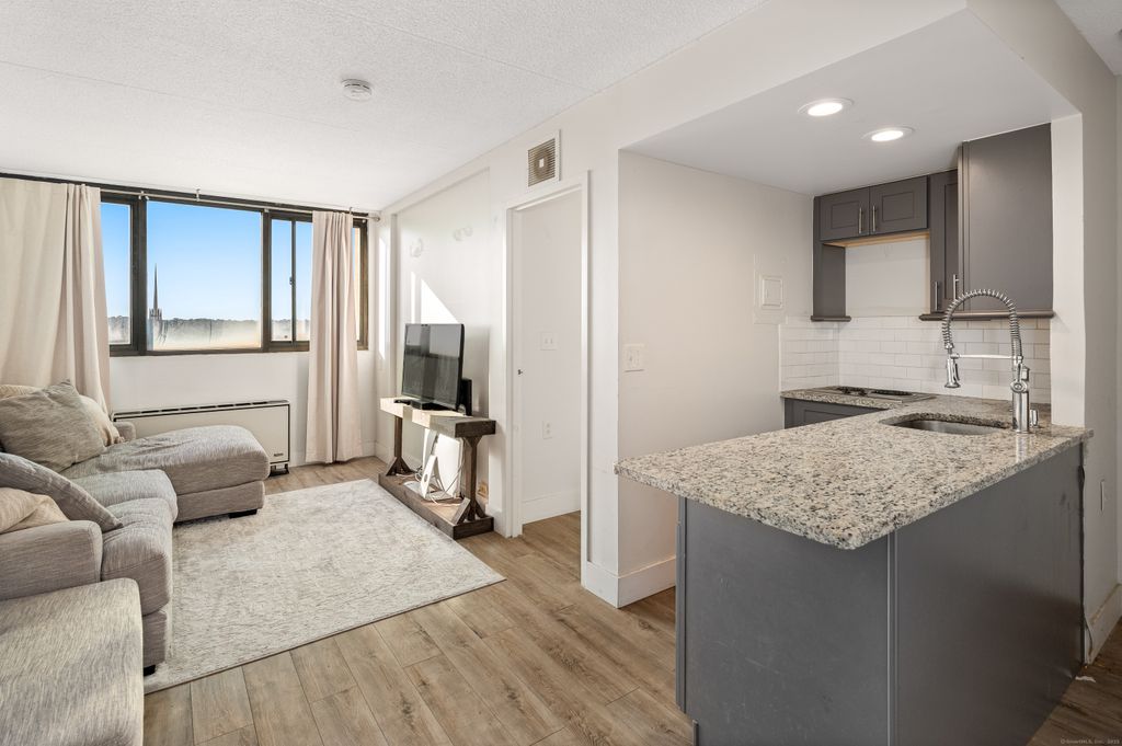 Welcome to Unit 816 at 60 Strawberry Hill Avenue - a bright and spacious 1-bedroom condo in Stamford's desirable Royal Pavilion. This updated unit features an open layout, a modern kitchen with quartz counters, and a comfortable living area with city views. The well-maintained building offers 24-hour security, a fitness room, sauna, convenient on-site laundry facilities, and garage parking, with most utilities (heat, hot water, water)included in the HOA. Perfect for both owners and investors, this is an investor-friendly building with comparable units renting for approximately $1,750 per month. Conveniently located near downtown shops, dining, and transportation, this condo offers easy, worry-free living in the heart of Stamford.