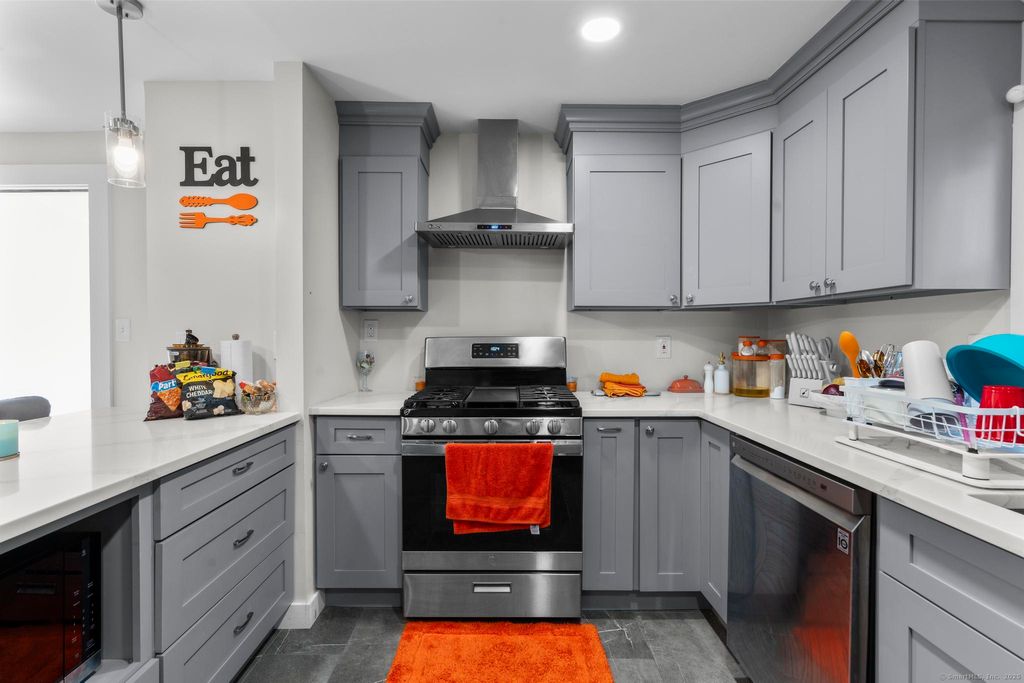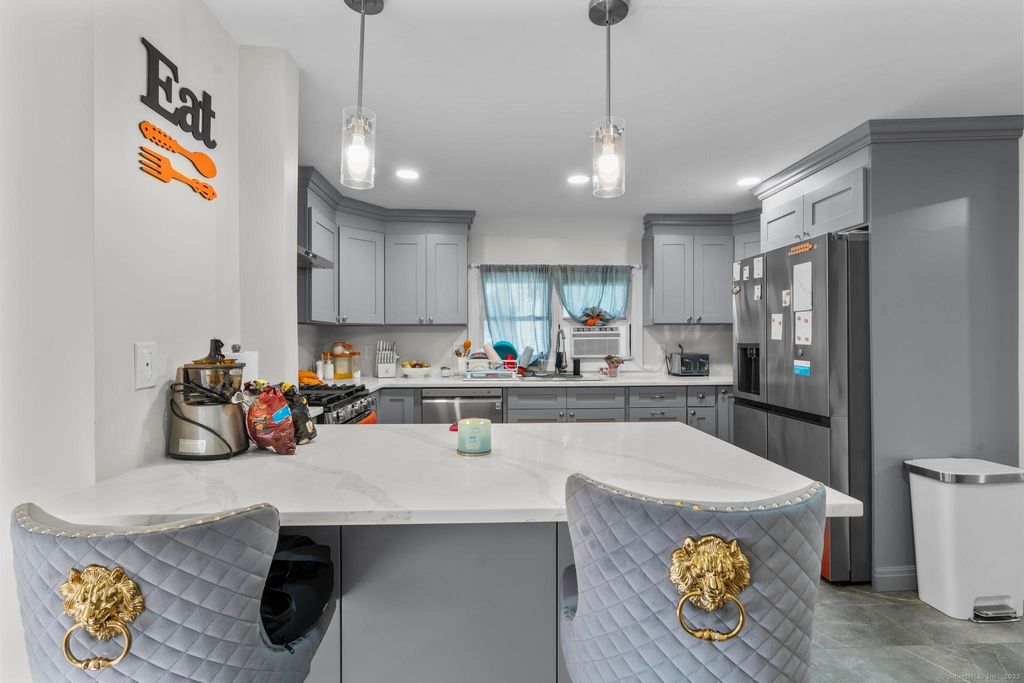 Welcome to 24 George Street! A beautifully remodeled two-family home in the heart of West Haven, offering turn-key living and an amazing investment opportunity. Fully renovated in 2023, this property features new siding, a new roof, and a renovated 2-car garage that mirrors the home's clean, modern exterior. Inside, both units have been thoughtfully updated with shaker-style cabinetry, quartz countertops, stainless steel appliances, and fully remodeled bathrooms. The first-floor unit includes 2 bedrooms, a spacious living room, dining room, kitchen, and full bath. The second-floor unit also offers 2 bedrooms, along with a generous living and dining space, kitchen, bathroom, and an added gem of a finished attic perfect for a home office, additional living space, or storage. The first-floor hot water heater is brand new as of 9/25, and all mechanicals have been well maintained, providing peace of mind for years to come. Outside, enjoy a level, easy-to-maintain yard ideal for gatherings, play, or gardening. Don't miss your chance to secure this exceptional property - schedule your private tour today!