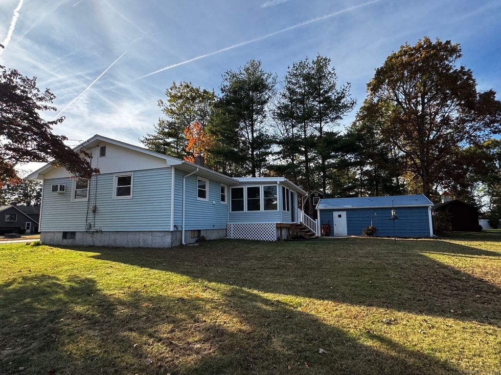 Set on a nice level lot, this inviting home offers one-level living in a neighborhood setting. This home features a bright living room, an eat-in kitchen, and three bedrooms. Enjoy extra living space in the finished basement-perfect for a family room, home office, or gym. A 3-season room provides the ideal spot to relax and take in views of the backyard. The property also includes a detached garage and storage shed, offering plenty of room for vehicles, tools, or hobbies. Conveniently located yet tucked away on a quiet dead-end street, this home combines comfort, privacy, and practicality!