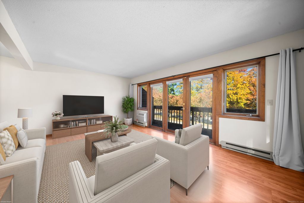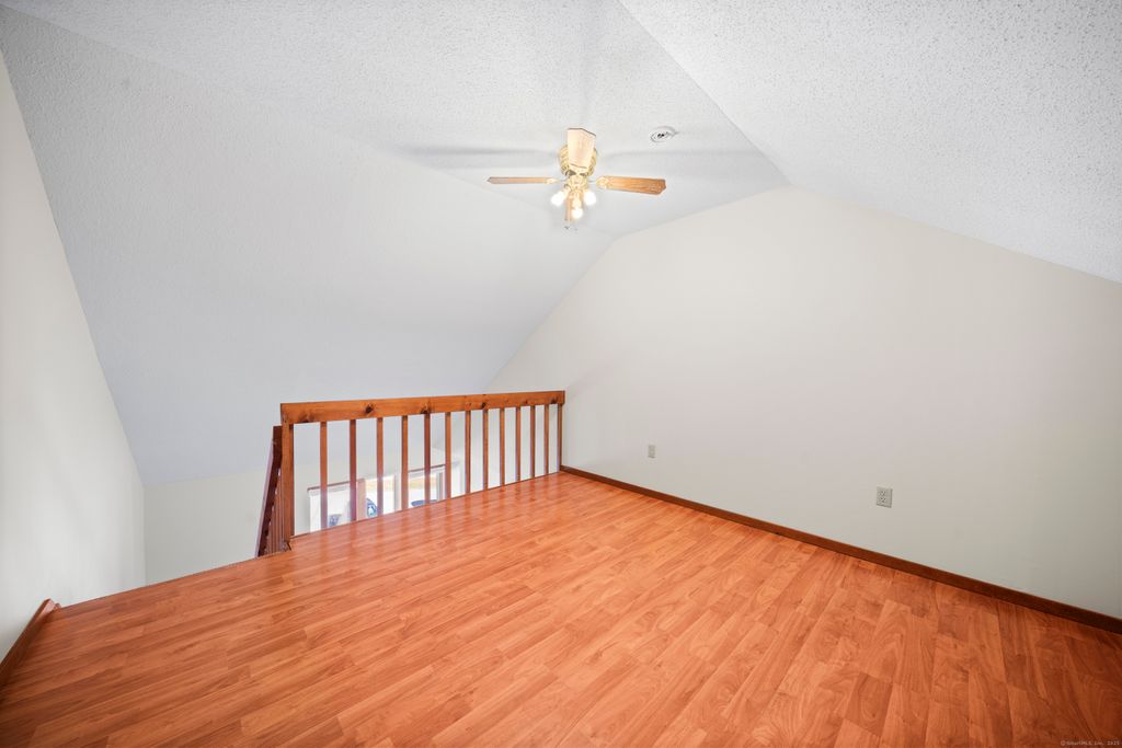 End unit condo at Forest Edge! Peaceful, secluded setting yet just minutes to I-84, perfect for an easy commute to Hartford or Boston-and only 20 minutes to UCONN. This two-bedroom, 1.5-bath condo has open-concept living with a bright galley kitchen featuring updated stainless steel appliances (2020), open to the living and dining area. Sliders lead to a private deck with wooded surroundings. Convenient main level half bath. Upstairs, the primary suite features a charming bay window with window seat and a spacious loft, one of the few units in the complex with this bonus space! A shared Jack-and-Jill full bath connects the primary suite and hallway. Spacious second bedroom with wooded views and a good sized closet. Additional highlights include an attached one-car garage, in-unit laundry located in the basement, and pet-friendly policies allowing one furry friend. A wonderful balance of privacy, convenience, and comfort at Forest Edge!