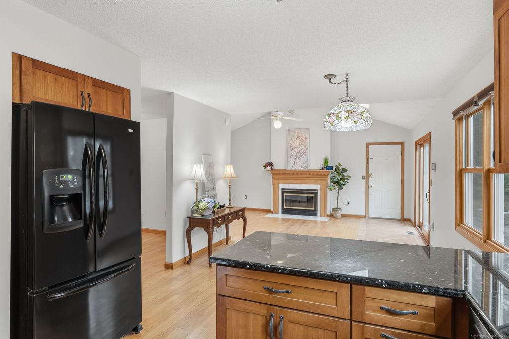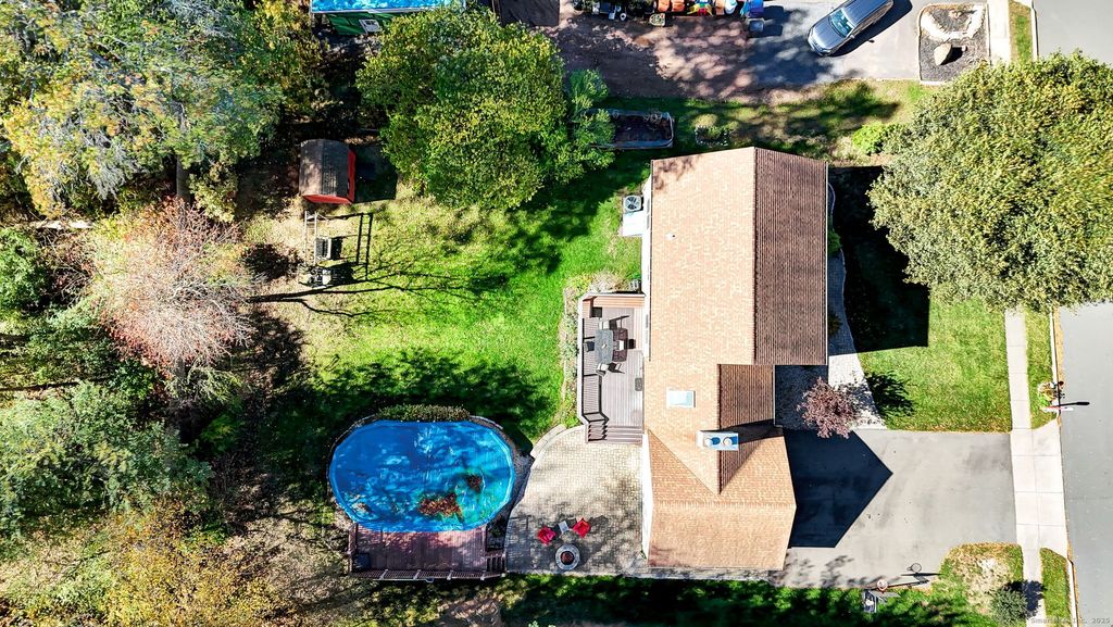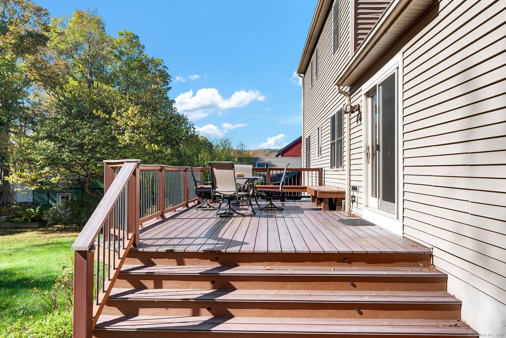 Contemporary Colonial with Craftsman Charm. This beautifully maintained 3-bedroom, 2.5-bath contemporary colonial blends modern comfort with craftsman-inspired details throughout. Offering 1,904 sq. ft. of living space plus an additional 300+ sq. ft. in the finished lower level as recreation room. The first floor features an oversized living room highlighted by a cozy fireplace, sun-filled skylight, and vaulted ceilings, creating an inviting, open atmosphere. The space flows seamlessly into the kitchen and dining area-ideal for entertaining or everyday living-and is enhanced by hardwood floors, granite counters, and direct access to the backyard. The main level also includes a formal dining room, a convenient half bath for guests, and a spacious great room-perfect as a home office, playroom, or cozy sitting area. Upstairs, the primary suite serves as a private retreat, complete with a full bath and a California-style walk-in closet. Two additional bedrooms share a generous hallway bath. The basement provides a flexible floor plan ideal for today's lifestyle-perfect as a family room, home gym, or hobby space. Step outside through the patio doors to enjoy the composite Trex deck, patio with firepit, and large above-ground pool. The level, manicured yard is perfect for gatherings and offers the ideal blend of sunlight and privacy, bordered by mature trees.