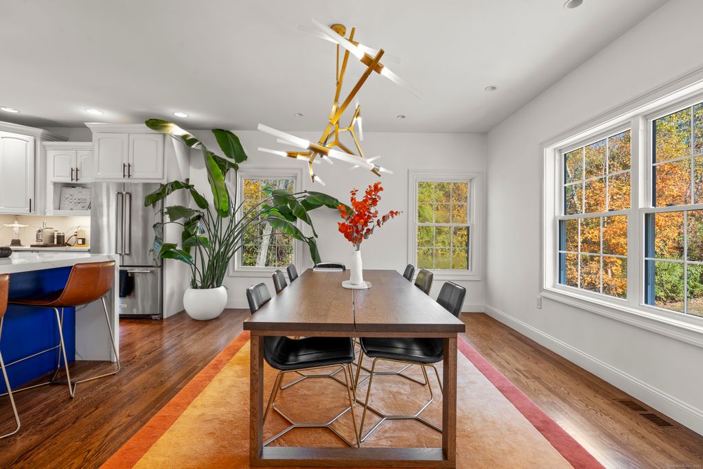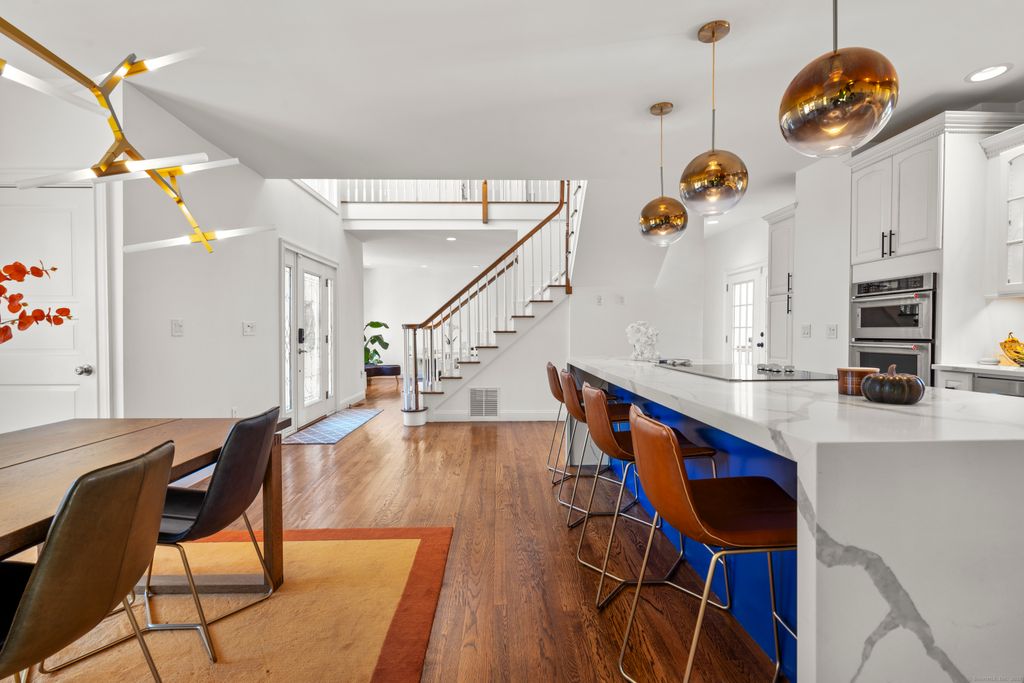 Welcome to this stunning 2,897 sq. ft. Colonial perfectly situated in Shelton's highly desirable Huntington neighborhood. Completely renovated and reimagined for modern living, this three bedroom, three and a half bath home showcases exquisite craftsmanship and designer finishes throughout. Step inside to find beautiful hardwood floors flowing across a sun-filled open layout. The chef's kitchen is a showpiece-featuring state-of-the-art stainless steel appliances, custom white cabinetry accented with Calacatta stone countertops, a striking royal-blue island, and modern pendant lighting that anchors the space with style. The adjoining dining area is bathed in natural light and framed by serene views of the surrounding landscape. The home offers generous living spaces, a two-car garage, and a full-size in-law apartment offering endless possibilities for multi-generational living, guest quarters, or additional income potential. Set on a picturesque lot with a private backyard, this property combines tranquility with convenience-just minutes from major highways, fine dining, shopping, and all that Shelton has to offer. Experience refined living in one of Fairfield County's most sought-after communities-your dream home awaits!