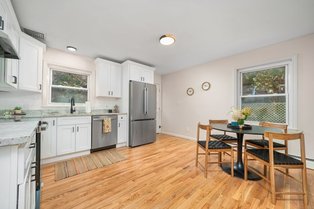 Beautifully remodeled 4-bed, 2-bath Cape located in absolutely wonderful neighborhood!! Step into a bright and sunny living room that opens to a large eat-in kitchen, fully updated with granite countertops, new stainless steel appliances, and shaker-style cabinets - plenty of space for a full dining table. The first floor also offers two bedrooms and a full bath, with brand-new hardwood flooring throughout. Upstairs features two generously sized bedrooms with brand-new carpet, an updated full bath, and tons of closet space. The large backyard offers a brick patio and fire pit - a perfect setting for outdoor entertaining. Additional highlights include central air to keep you cool in the summer and a brand-new furnace just installed. Truly a must-see!