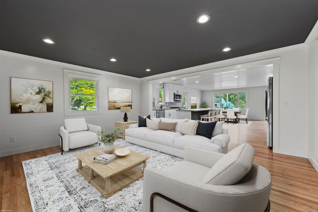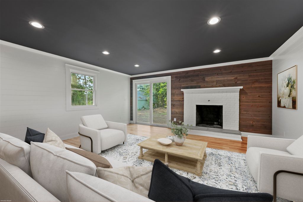MOVE - IN READY!! STYLISH TOP TO BOTTOM REMODEL! New white garage door installed soon.Truly turn-key and move-in ready, this completely remodeled IMPRESSIVE 3-bedroom, 2-bath home w/attached garage sits on a sidewalk-lined neighborhood street close to shopping, dining, parks and quick highway access. Enjoy city water/sewer and efficient natural gas heat with central air. A bright, open layout showcases DESIGNER touches, thoughtful details, gleaming hardwoods, recessed lighting, and a striking open concept living room with painted brick fireplace, warm wood accent wall and a slider to the level backyard. All-new white shaker kitchen features a long furniture-style island for prep and seating, granite counters, marble-look backsplash & stainless appliances including a gas range-perfect for everyday cooking & entertaining. Family room is sun drenched and accesses garage and backyard. Huge basement area with storage & a room that can be finished as a gym or theater. Both full baths are STYLISH and have been fully remodeled. Thoughtful updates deliver peace of mind: NEW windows/doors, upgraded 200-amp electrical, NEW gas HVAC, upstairs laundry, and a 2-year-old roof. Curb appeal pops w/stone-front detail and an attached garage. New paver walk way from newly sealed driveway to front door. New steps to level backyard. Loved for top-rated Glastonbury schools, orchards/farm stands, Riverfront Park & vibrant community events-this is the turnkey home you've been waiting for.