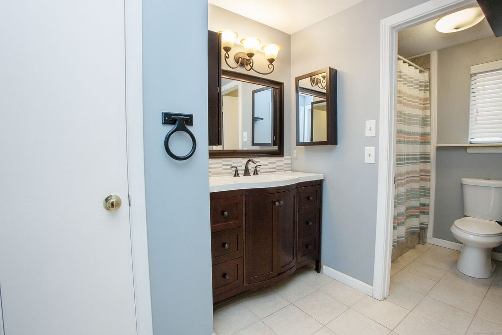 Rarely available ranch-style end unit at Governors Bridge! This beautifully maintained 2-bedroom condo offers the ease of single-level living with an attached garage and numerous updates throughout. The remodeled kitchen and bathrooms feature modern finishes and thoughtful design. Roof, siding, driveway, and sidewalk all replaced within the last few years! Enjoy an extra 1000 square feet of living space in the fully finished lower level, complete with two private rooms, bathroom a generous common area-perfect for a home office, gym, or play area. Step outside to your private deck overlooking a serene setting, ideal for relaxing or entertaining. Don't miss this opportunity to own one of the most desirable units in Governors Bridge, conveniently located near the heart of Tariffville and minutes from shops, dining, and outdoor recreation.