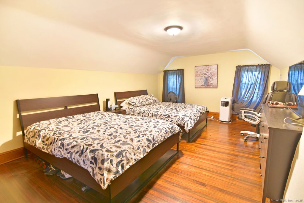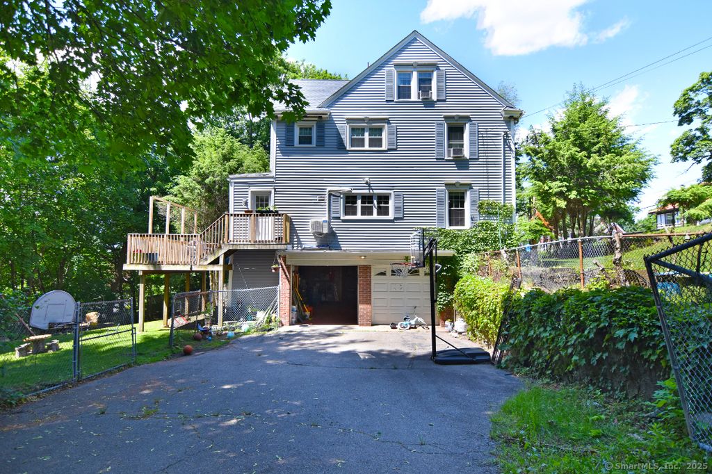 Come view this recently updated 5 bedroom Colonial in the heart of the Overlook neighborhood in Waterbury! Upon entering you will find steps leading up to the second level. To the right you will find a living room with a brick fireplace framed by a marble surround and white painted moldings. You can access another room off the rear of the LR which can be used as an office, play area or additional casual living area. To the left of the foyer you will find a handsome dining room with build in hutch and dark hardwood flooring. Through the dining room you can access the eat-in kitchen complete with granite countertops, tiled backsplash, stainless steel appliances, two sinks, and beautiful tiled flooring. Eat-in kitchen sits at the back of the room with large windows opening up to the deck area. A side door off the kitchen opens up to the deck overlooking the yard. Outstanding master bedroom with plenty of space for two full beds and furniture. This master bedroom has a walk in closet leading up to a gorgeous master bath. You will find a walk in shower with glass doors in addition to a tub and vanity. White and grey herringbone patterned floor tile with stacked white and grey square wall tile give this bathroom a fresh and relaxing vibe. There are an additional 2 bedrooms on the second floor and another 2 bedrooms with updated full bath in the attic complete with walk in shower with glass door, marble style tiled flooring & walls for the shower as well as granite covered vanity.