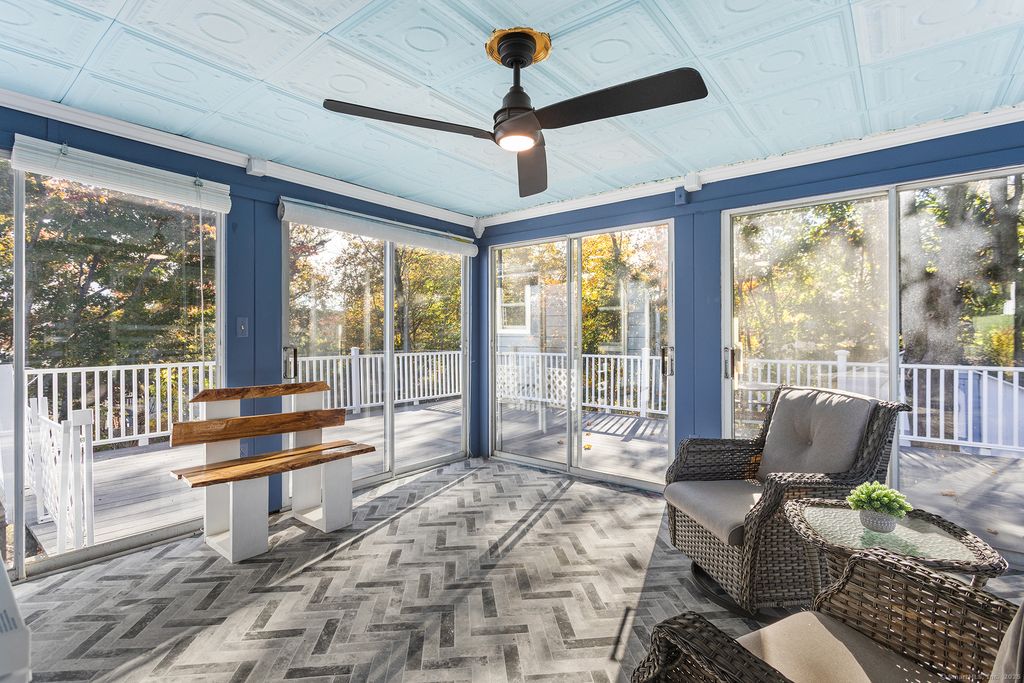 Charming 2-Bedroom Home with Sunroom, Solar Savings & Modern Comforts! Discover this beautifully updated 2-bedroom, 1-bath home that perfectly blends character, comfort, and efficiency. Step into the inviting living room featuring refinished hardwood floors and a cozy wood stove, creating a warm and welcoming atmosphere. The hardwood continues down the hall through both bedrooms, adding timeless appeal throughout. Enjoy the bright three-season glass sunroom, perfect for relaxing, entertaining, or taking in the changing seasons. The partially finished basement provides flexible space for a home office, gym, or recreation area. Recent updates include a brand-new roof, freshly painted exterior, and two new energy-efficient mini-split heating and cooling units for year-round comfort. Even better - the solar panels keep utility costs incredibly low, with an average payment of only $92/month and minimal to no electric bill for the last 12 months! Located in a great location, this home offers easy access to local shops, restaurants, parks, hospitals and commuter routes. Move right in and start enjoying low-cost, low-maintenance living.