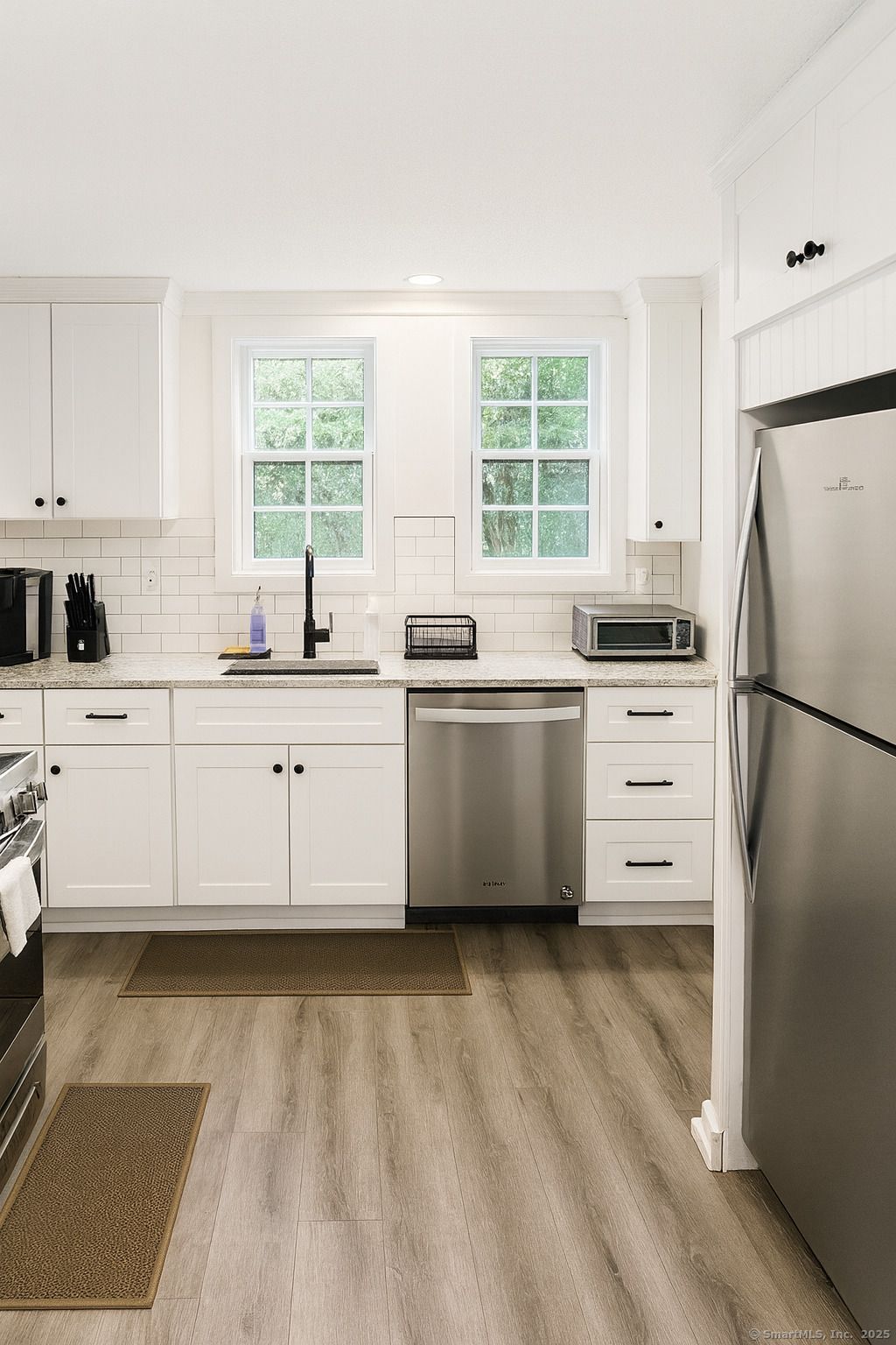 Welcome home to a beautifully reimagined coastal retreat in the heart of desirable Westbrook, Connecticut. This stylish home combines timeless charm with modern design for the ultimate in seaside living. This amazing home has been completely transformed from top to bottom. A huge list of improvements all new in 2023 include new roof on home and garage, windows, Trex deck and porch, Hardie board siding, waterproof rigid core floor, kitchen cabinets, appliances, all new light fixtures, expansion take and well pump, self-contained double walled oil tank, bathroom and energy-efficient windows that fill the home with natural light! Step inside to an inviting open-concept layout that's perfect whether you're entertaining guests or enjoying a quiet evening at home. The modern kitchen showcases newer stainless steel appliances, custom cabinetry, and sleek countertops, seamlessly connecting to the cozy living area. The oversized two-car garage provides great storage or workshop potential, and the spacious yard offers plenty of room for outdoor living, gardening, or simply relaxing by the shore. Just a short stroll from the beach, Hammonasset Beach is only 10 minutes by car, this home embodies the best of coastal Connecticut living - with local favorites like breweries, shops, and restaurants only moments away. Don't miss your chance to own this beautifully updated gem!