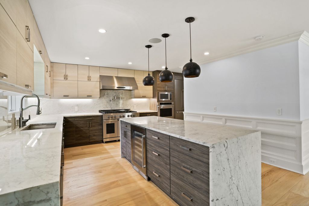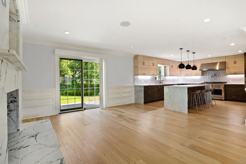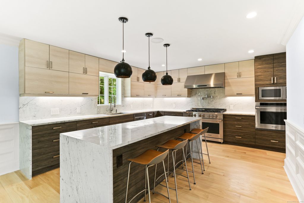 Experience refined living in this exceptional four bedroom Colonial, privately set in the desirable Black Rock neighborhood. Built in 2018, this home showcases luxurious finishes and timeless craftsmanship throughout. A charming front porch invites you into an open concept living and dining area highlighted by a marble fireplace and sliders leading out to a gorgeous stone patio, perfect for relaxing or entertaining. The custom gourmet kitchen features waterfall quartz countertops, custom cabinetry, top of the line Dacor appliances, a 6 burner gas stove, wall oven, and a stunning island that seats 4/5, offering both beauty and function with abundant storage.The main level also includes a sleek modern half bath with marble countertops and elegant design. Thoughtful details abound, including wide-plank oak flooring, custom crown and panel moldings, and designer lighting. Upstairs, the spacious primary bedroom includes ample closet space and an en-suite bath with double marble vanities and an oversized marble walk in shower. Three additional large bedrooms share a beautifully appointed hall bath with marble counters and a tub/shower with frameless glass. The lower level offers flexible space perfect for a gym, playroom, or media room. Outside, enjoy the private backyard with a serene stone patio. The property includes a 2 car garage, ample extra parking, and is wrapped in low maintenance Hardie Board siding. Every inch of this home is built for comfort and sophistication.