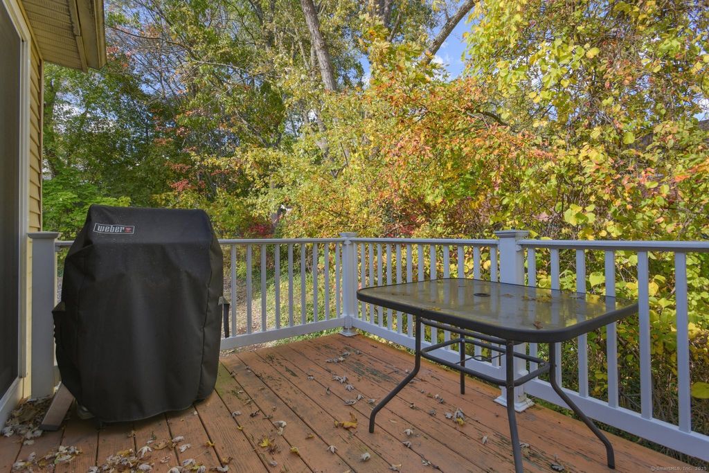 Welcome to Center Street living at its best! A rare opportunity to own the very last end unit tucked away at the back of this quiet, well-kept complex of only 24 townhomes. With HOA fees under $300/month, this spacious 2-bedroom, 1.5-bath condo offers low-maintenance living with the perfect blend of privacy and convenience, not to mention Wallingford electric!!! Step inside to a bright and open living space featuring hardwood floors, oversized windows, and a functional layout that flows seamlessly from the living room to the dining area and kitchen. The kitchen boasts rich wood cabinetry, granite counters, and stainless steel appliances, ready for your next home-cooked meal or dinner party. Downstairs, two generous bedrooms offer plenty of natural light, closet space, and easy access to a full bath. Enjoy your morning coffee or unwind in the evening on your private deck, surrounded by a peaceful backdrop of trees. Additional perks include in-unit laundry, central air, and a prime end-unit location with no through traffic-just steps from the heart of downtown Wallingford, Connecticut. Grab a legendary sandwich at Vinny's Deli, explore local restaurants, coffee shops, and boutique shopping along Center Street, or hop on nearby highways for easy commuting. Whether you're a first-time buyer, downsizing, or looking for a low-maintenance lifestyle close to everything, this home checks every box.