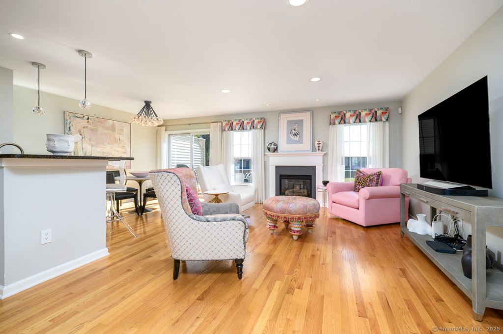 Welcome Home to 1603 Briar Woods Lane - a stunning, move-in ready townhome on Danbury's coveted West Side! Nestled within the beautifully maintained and highly sought-after Briar Woods community, this immaculate 2-bedroom, 2.5-bath tri-level townhouse perfectly combines modern luxury, timeless elegance, and everyday comfort. Step inside to a sun-filled, open-concept main level featuring gleaming hardwood floors, updated recessed lighting and stylish designer bespoke light fixtures. The inviting living room centers around a gas fireplace w/ custom mantle creating a warm and welcoming space for relaxing or entertaining. The chef-inspired kitchen impresses w/ granite countertops, an expanded breakfast bar, stainless steel appliances, stunning tile backsplash, designer cabinet knobs & pulls, abundant cabinetry, and under/over-cabinet lighting for a warm, inviting glow. A triple bow window with custom built-in window bench + storage fills the space w/ natural light while sliding doors from the dining area open to a private deck - perfect for morning coffee or sunset views. The upper level offers two spacious ensuite bedrooms including a primary suite w/ vaulted ceiling, walk-in closet and a luxurious spa-like bath with double vanity and oversized glass step-in shower. The second ensuite bedroom offers its own full bath and generous closet space - ideal for guests or family. Laundry closet with full-size washer and dryer completes this level. The finished walk-out lower
