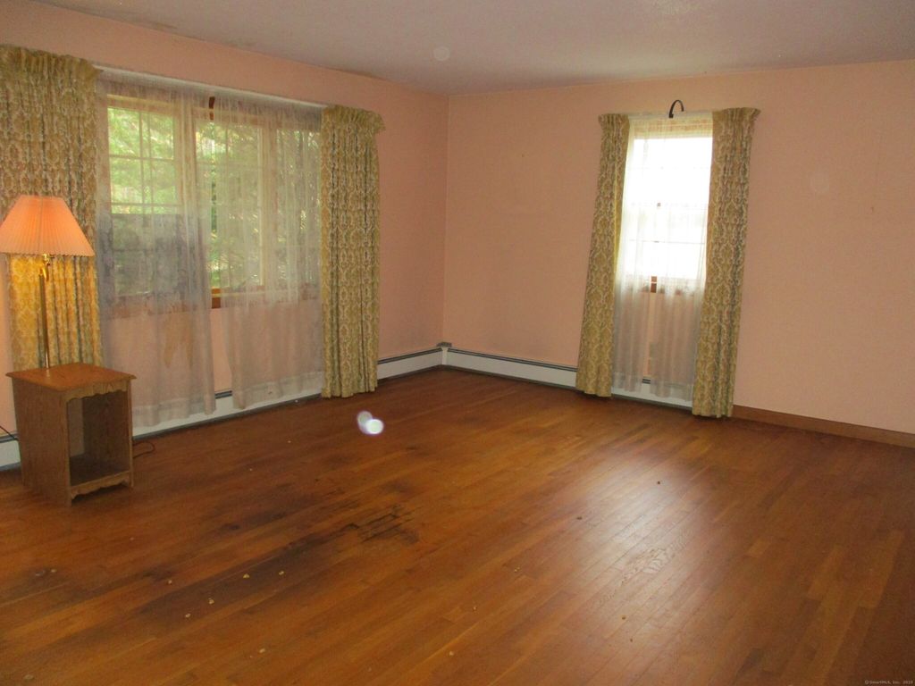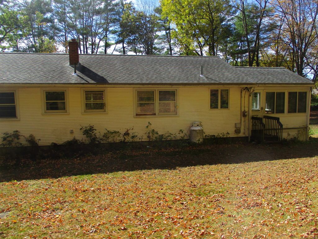 First time offered on this one owner 3 BR ranch home in a great location on the Putnam/Woodstock town line. Eat-in kitchen has birch cabinets with older appliances. Dining area has hard wood floors with double windows overlooking the very private wooded back yard. Good size living room with bay window and hardwood floors in very good condition. Three decent size bedrooms, all with hardwood floors. One full bath. Basement offers an older-style family-room with dry-bar set up in the corner. Also, there is a partially finished room with a walk-out door which was once a local Craft Shop. Large 2-car carport. Nearly an acre of land not far from downtown Putnam. Just needs a little bit of TLC and updating to make it your own in time for the holidays.