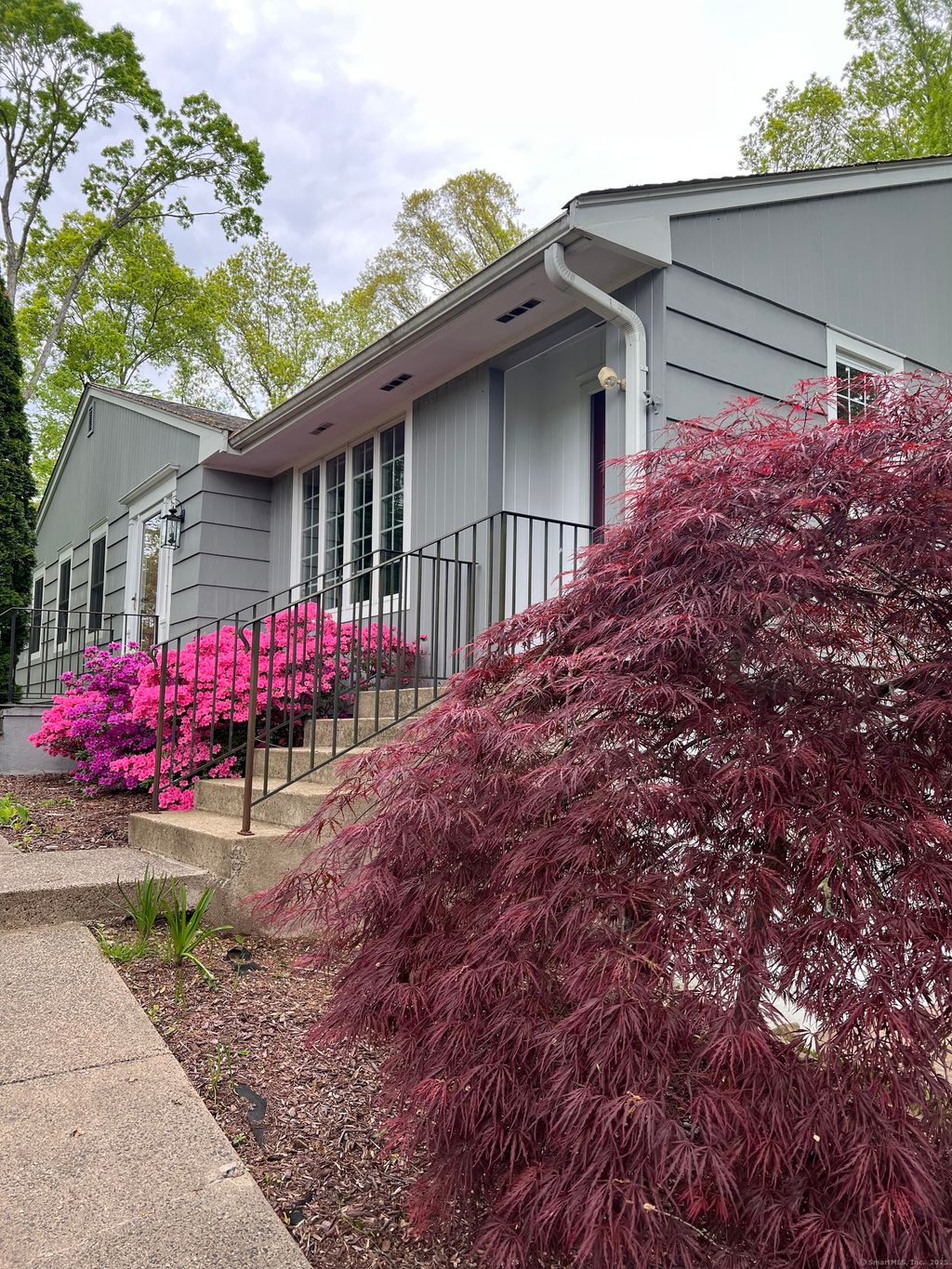 Nestled at the gateway to Pine Orchard, set back from the road, sits this sprawling ranch in a private, park like setting. This gem is not to be missed! Step inside to a sun-filled living room, anchored by a striking stone fireplace, with two sets of glass french doors, flowing easily into the dining room and kitchen. The updated kitchen features stainless steel appliances and a large island perfect for cooking and gathering. There is a spacious mudroom and another easy access entry to the spacious rear deck and serene backyard. The primary suite at the far end of the home has a large bedroom, en-suite bathroom, newly added sliders that lead to the rear deck. Three additional bedrooms, full bath and powder room complete the main level.Gleaming hardwood floors, fresh designer paint colors, modern lighting and thoughtful updates at every turn. The partially finished lower level expands the living space with a family room featuring a second fireplace. The well appointed laundry area with folding counter, sink and LG washer/dryer make doing laundry a pleasure. This meticulously maintained and perfectly located home offers the best of both worlds-peaceful privacy and close to all of Branford's favorite destinations. Discover why Branford is one of Connecticut's most sought after shoreline communities.